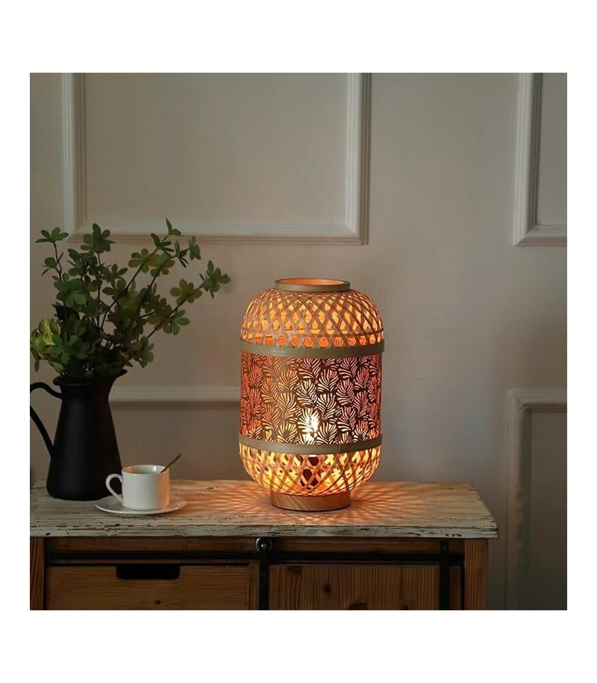 🏮 Lámpara de Sobremesa Oriental en Bambú y Metal Repujado – Luz Cálida con Estilo Artesanal ✨