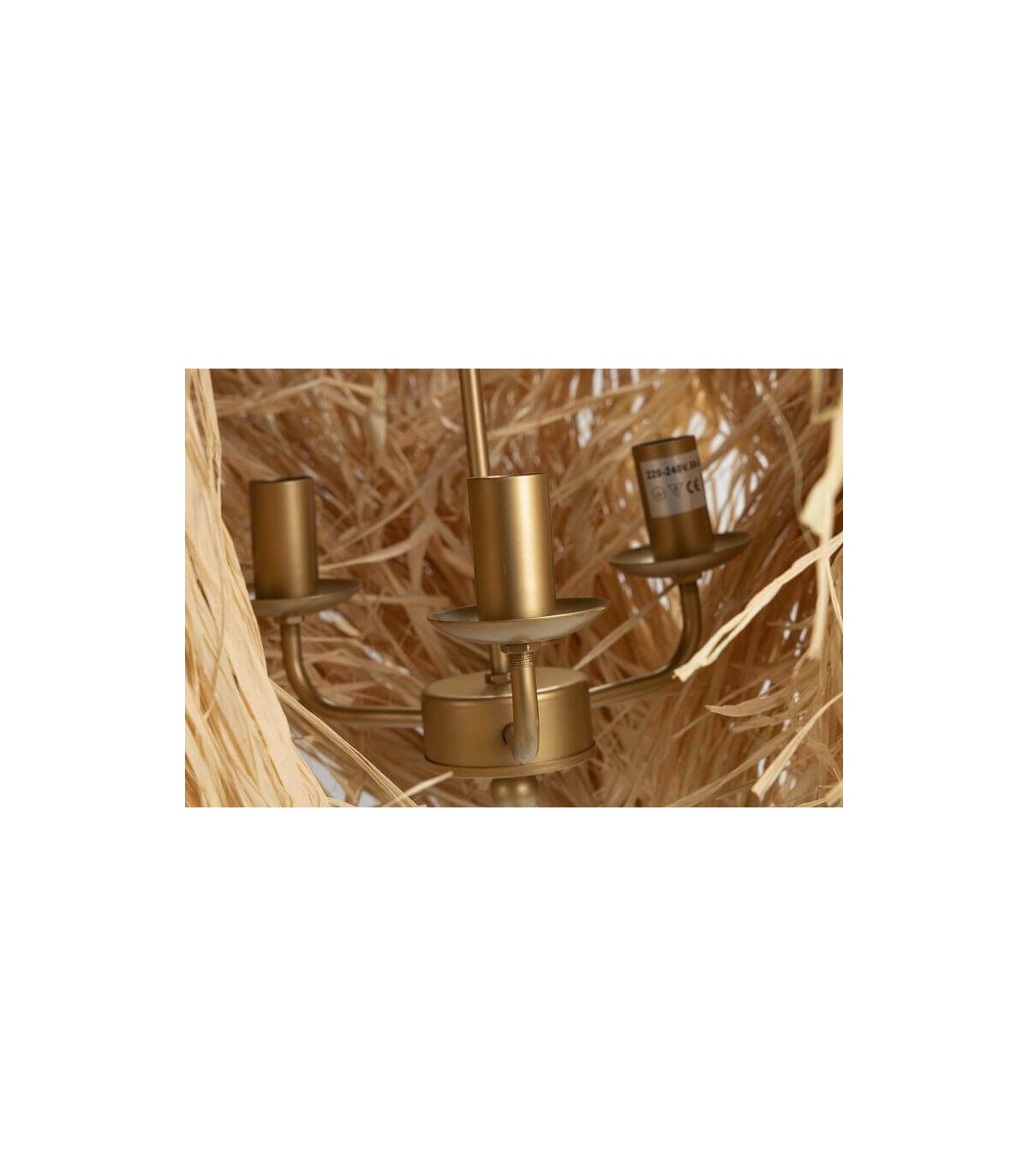 Sus tres puntos de luz permiten iluminar estancias amplias sin resultar pesada visualmente. El diseño mantiene una estética artesanal y atemporal, fácil de integrar en interiores clásicos. La cadena de anclaje en metal dorado introduce un contraste sutil que realza el conjunto sin romper su armonía.