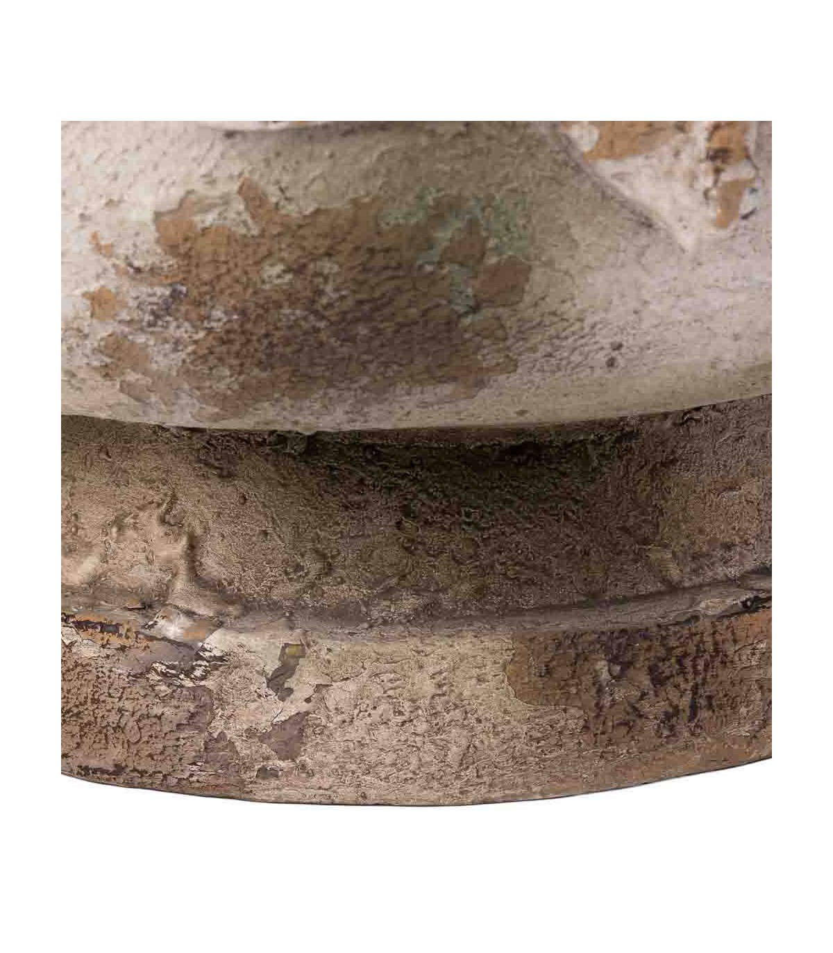 La textura rugosa y las suaves irregularidades del acabado aportan autenticidad y carácter decorativo. Su forma redondeada con base elevada facilita la colocación y destaca la pieza. Ideal para crear composiciones con plantas y dar personalidad a cualquier rincón.