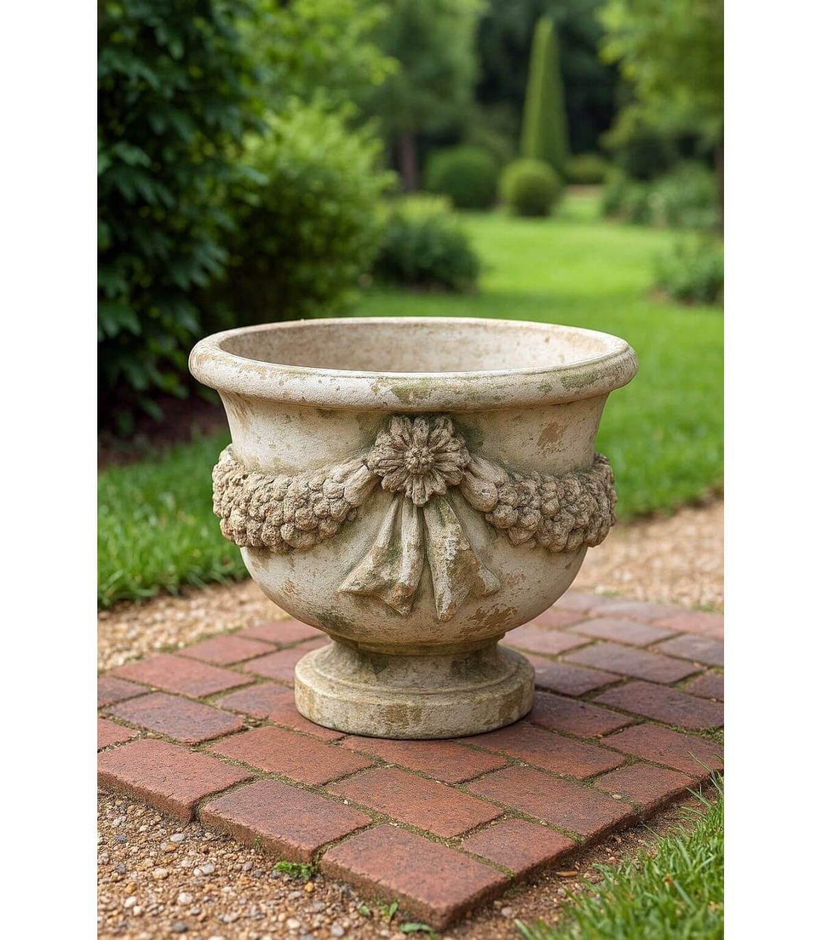 🏛️ Macetero Clásico de Magnesia con Relieve Floral – Acabado Piedra Envejecida ✨