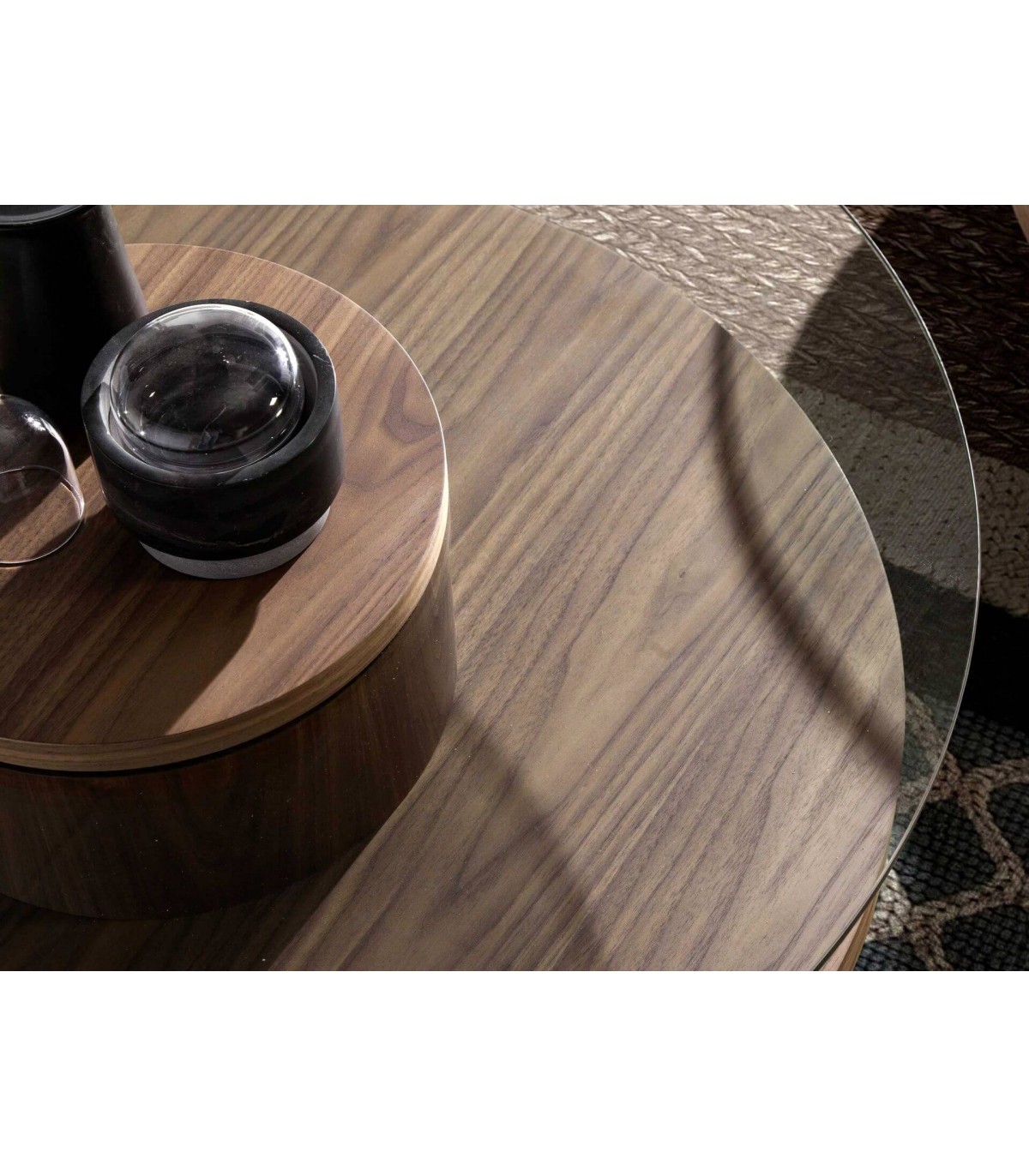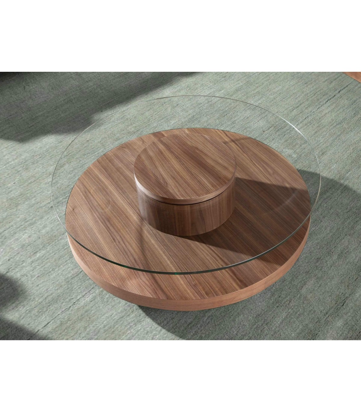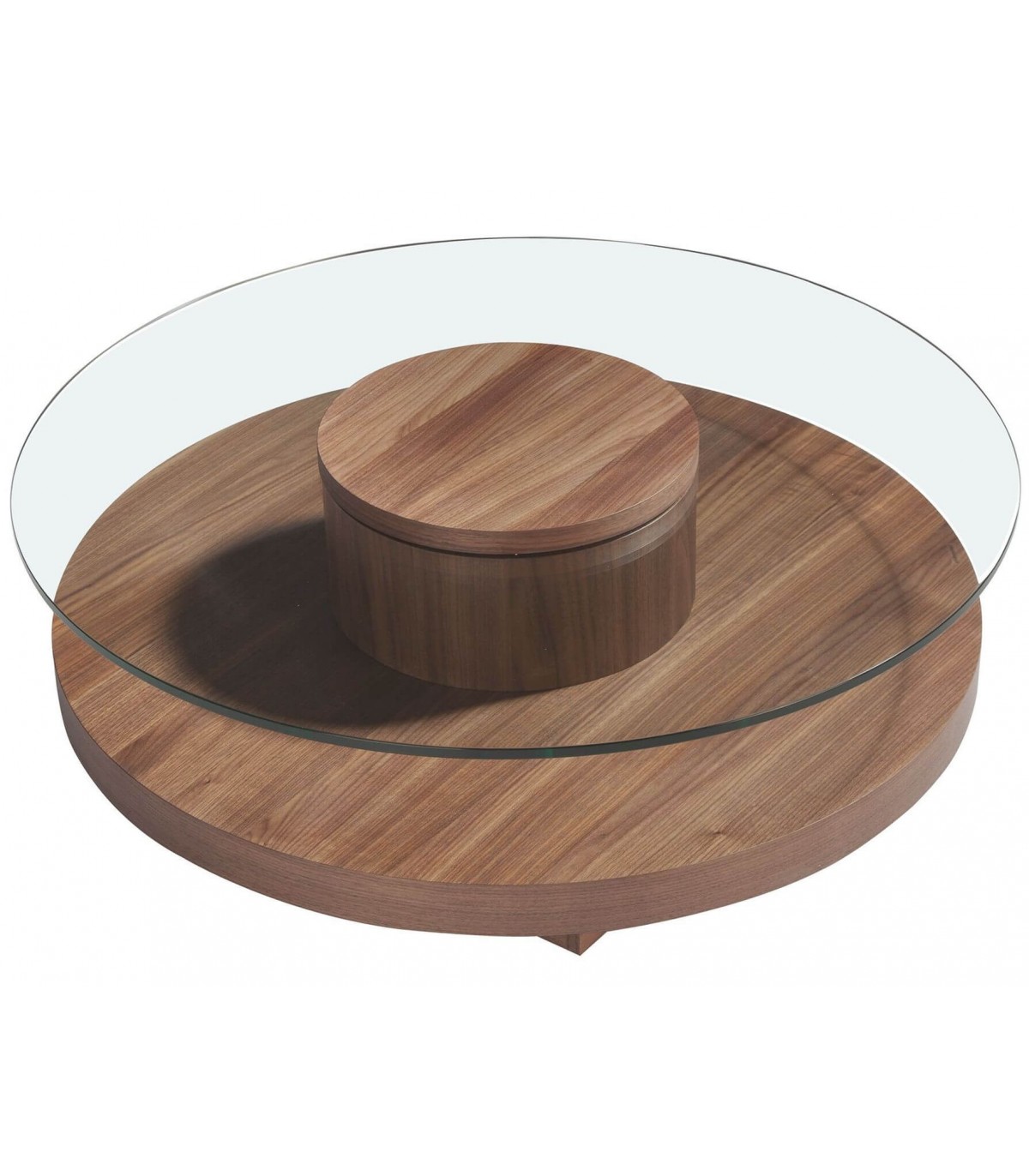 MESA DE CENTRO CREDONDA 100 Ø X 35 FILPA MADERA DE NOGAL Y CRISTAL
