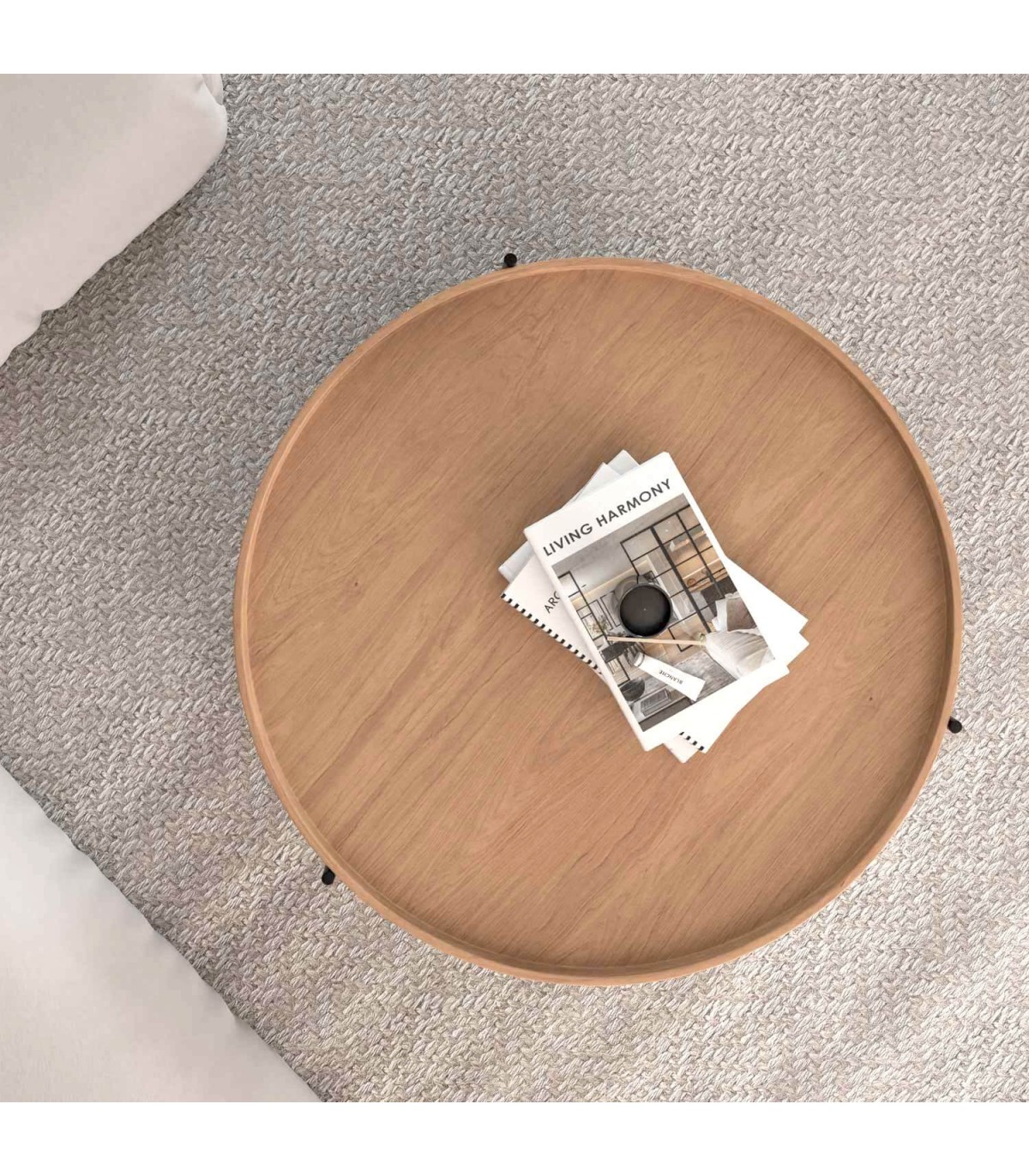MESA DE CENTRO REDONDA 80 Ø X 40 LAIN MADERA ROBLE METAL NEGRO