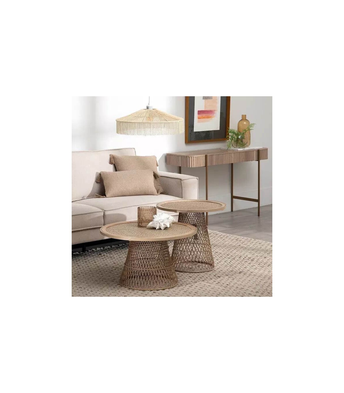 MESA DE CENTRO 70 Ø X 40 CATANIA RATAN Y METAL NATURAL