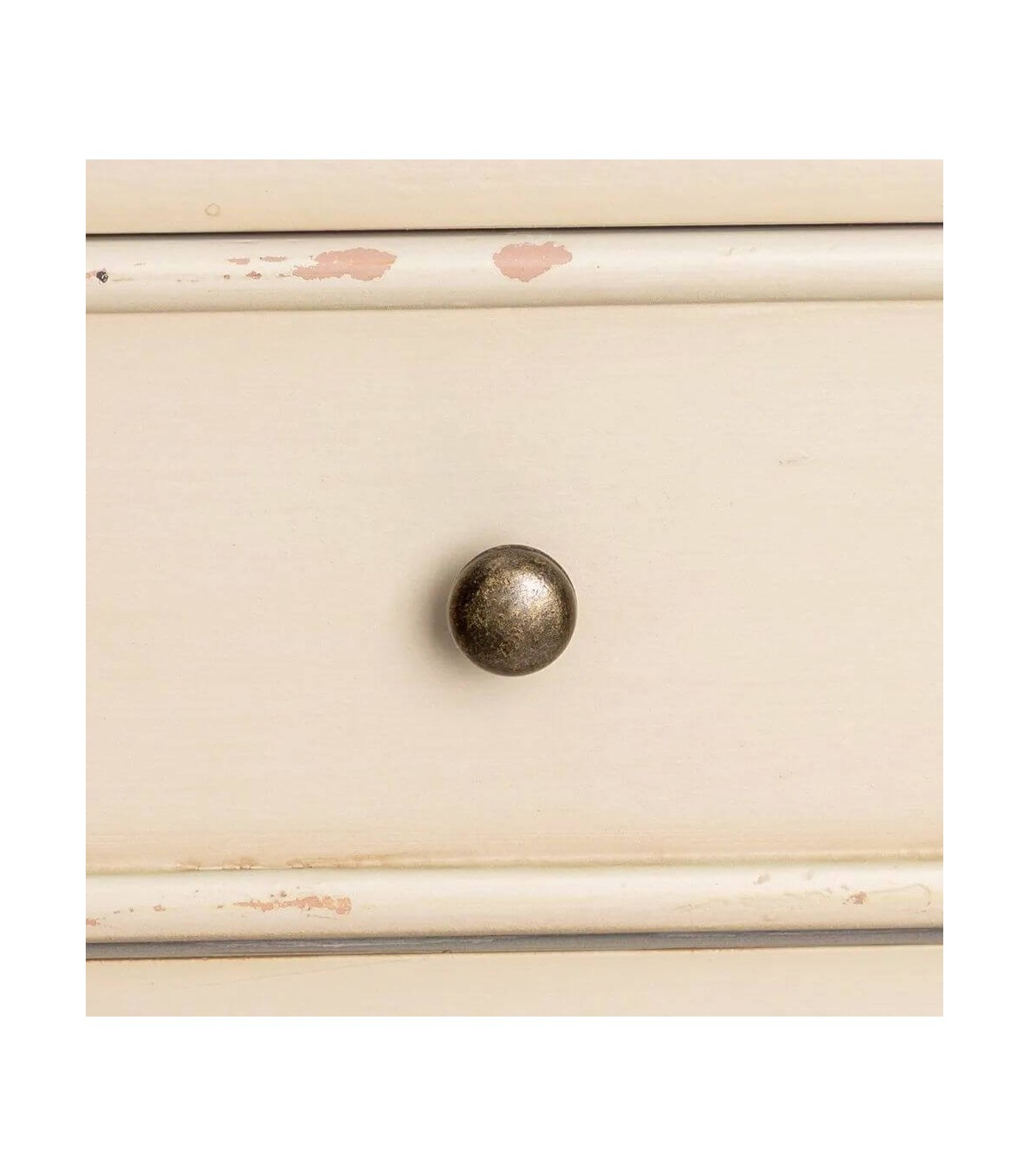 🎨 Acabado: Madera lacada en blanco roto rozado, tirador bronce patinado. Fabricación artesanal, entendemos las variaciones de tonalidad, tamaño y forma o ciertas imperfecciones (grietas, nudos, marcas) como un valor añadido que la convierten en pieza única.