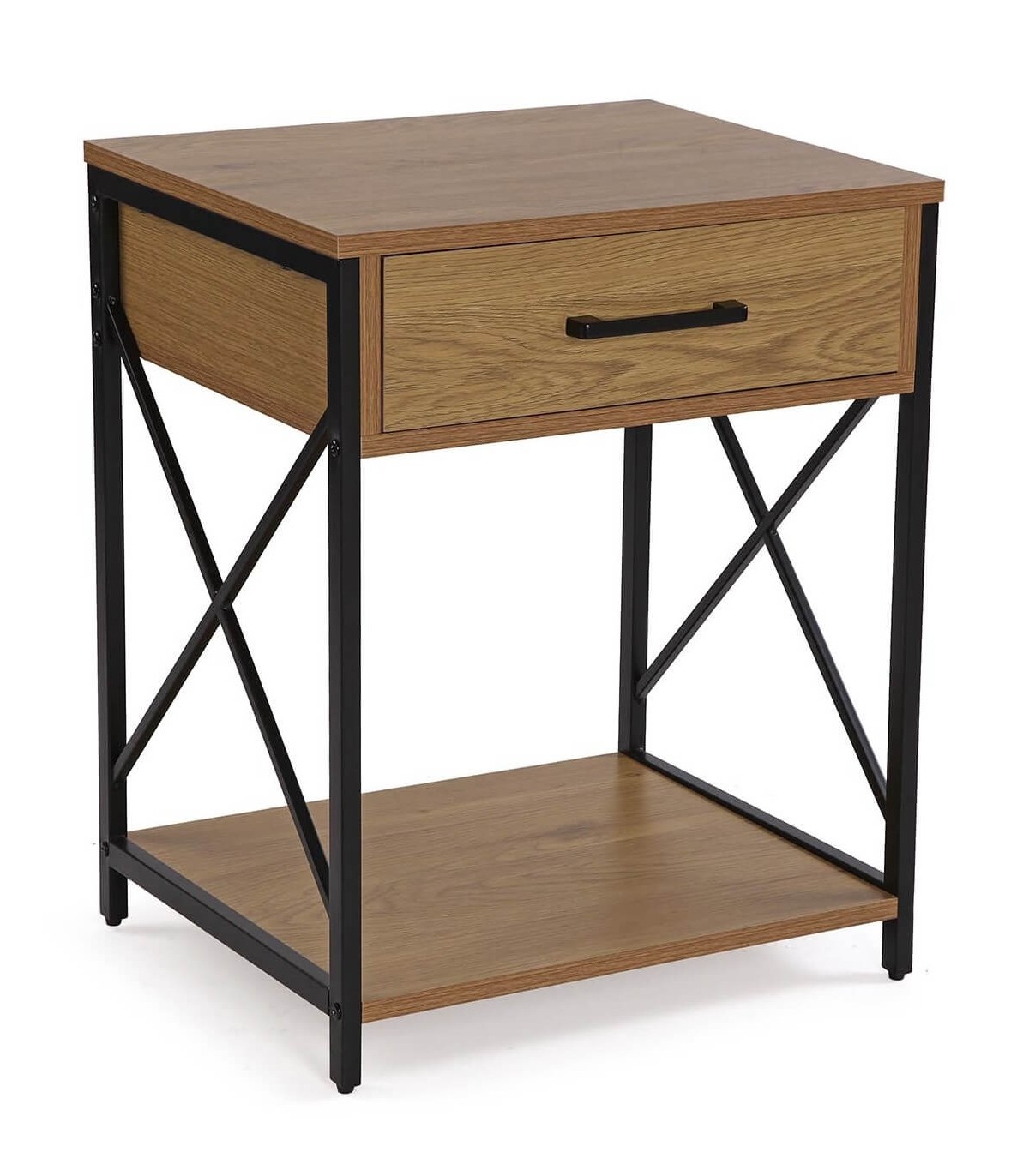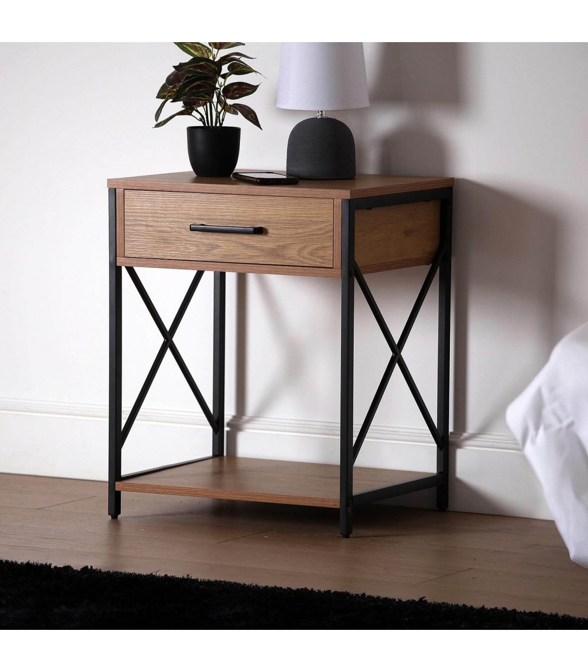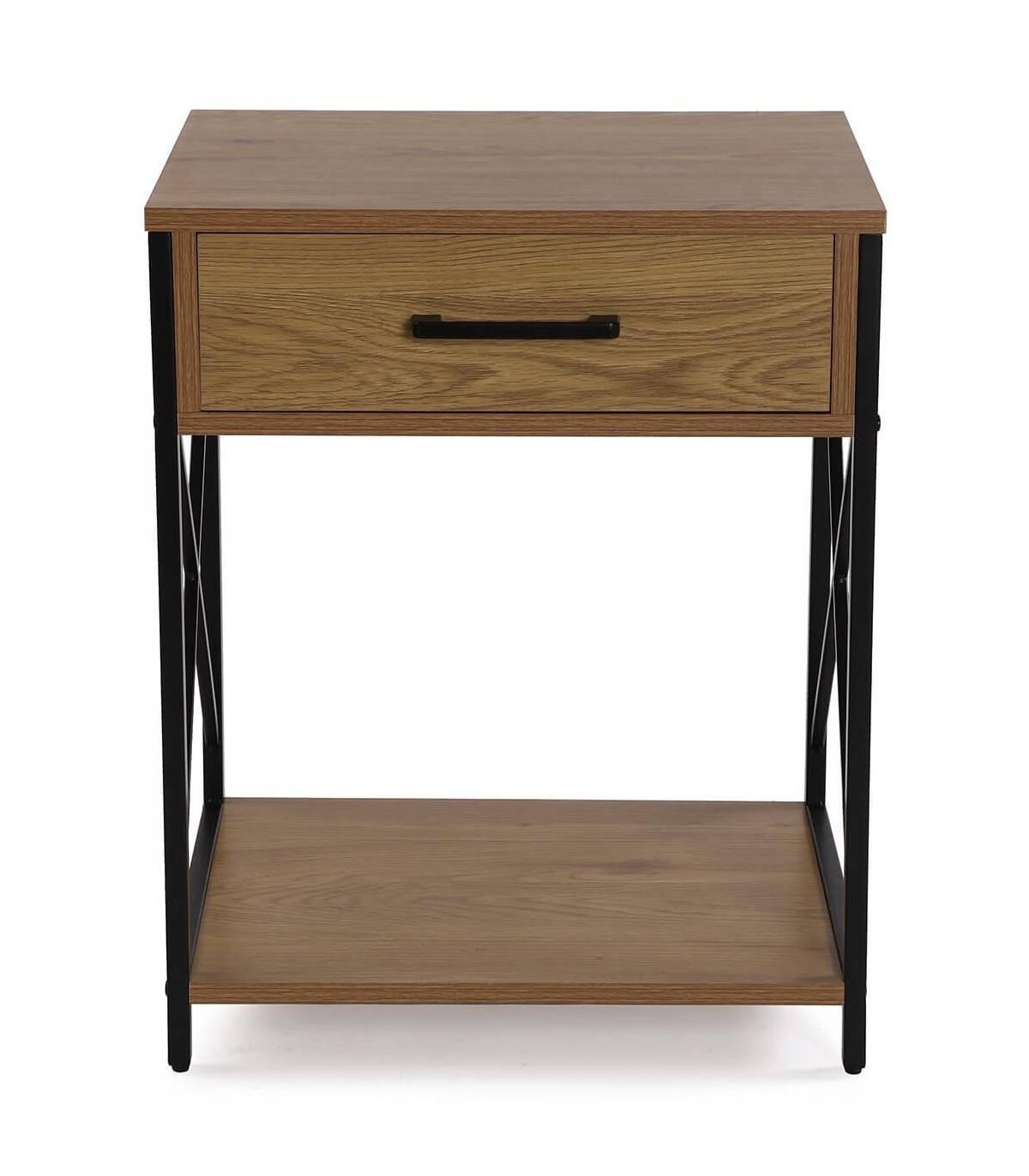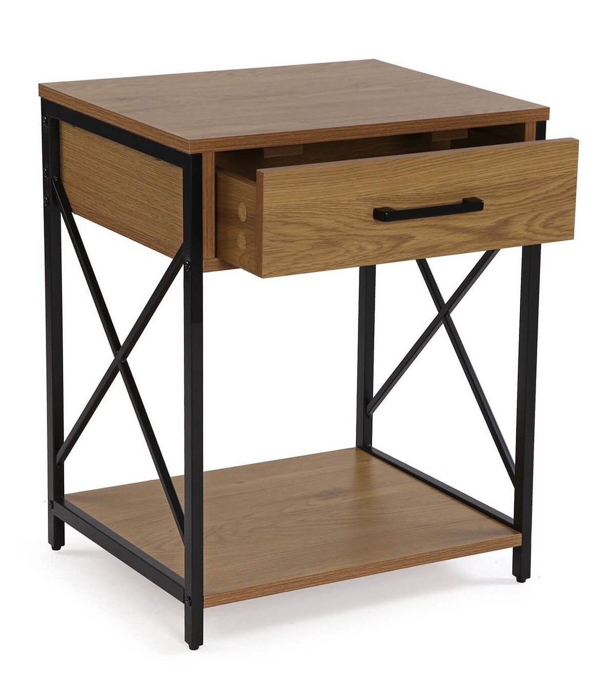 MESITA DE NOCHE 48 X 40 X 60 CRUX METAL NEGRO MDF ROBLE
