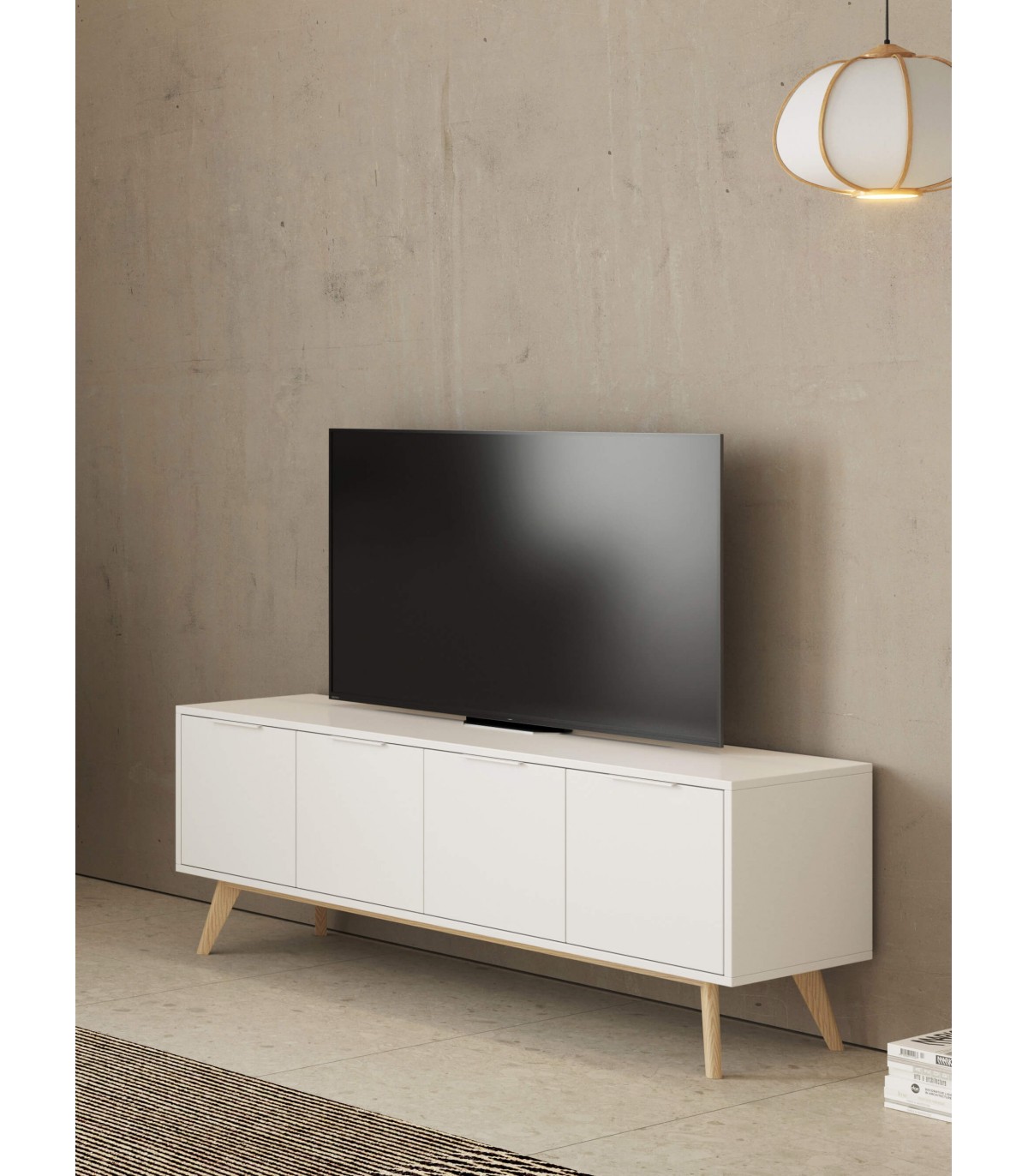 MUEBLE DE TV 4 PUERTAS 140 X 40 X 53 RELIS MADERA NATURAL BLANCO