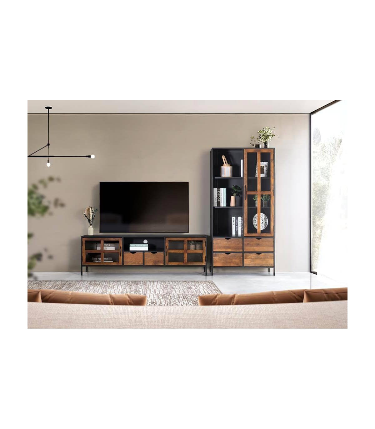 - Mueble de TV, 2 puertas, 2 cajones estilo industrial.