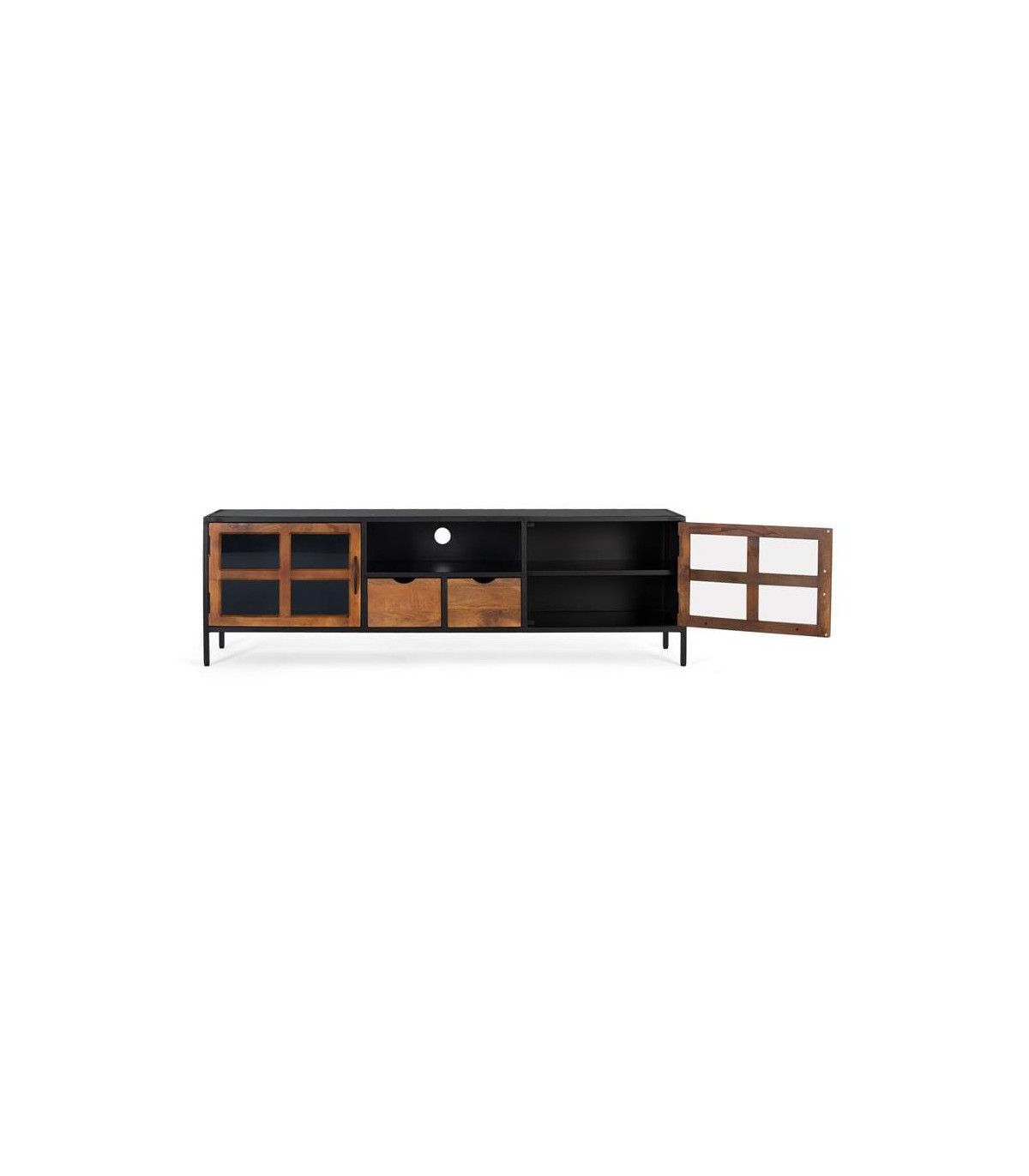 MUEBLE DE TV GRANDE 180 X 40 X 56 FLOCA MADERA MANGO METAL NEGRO