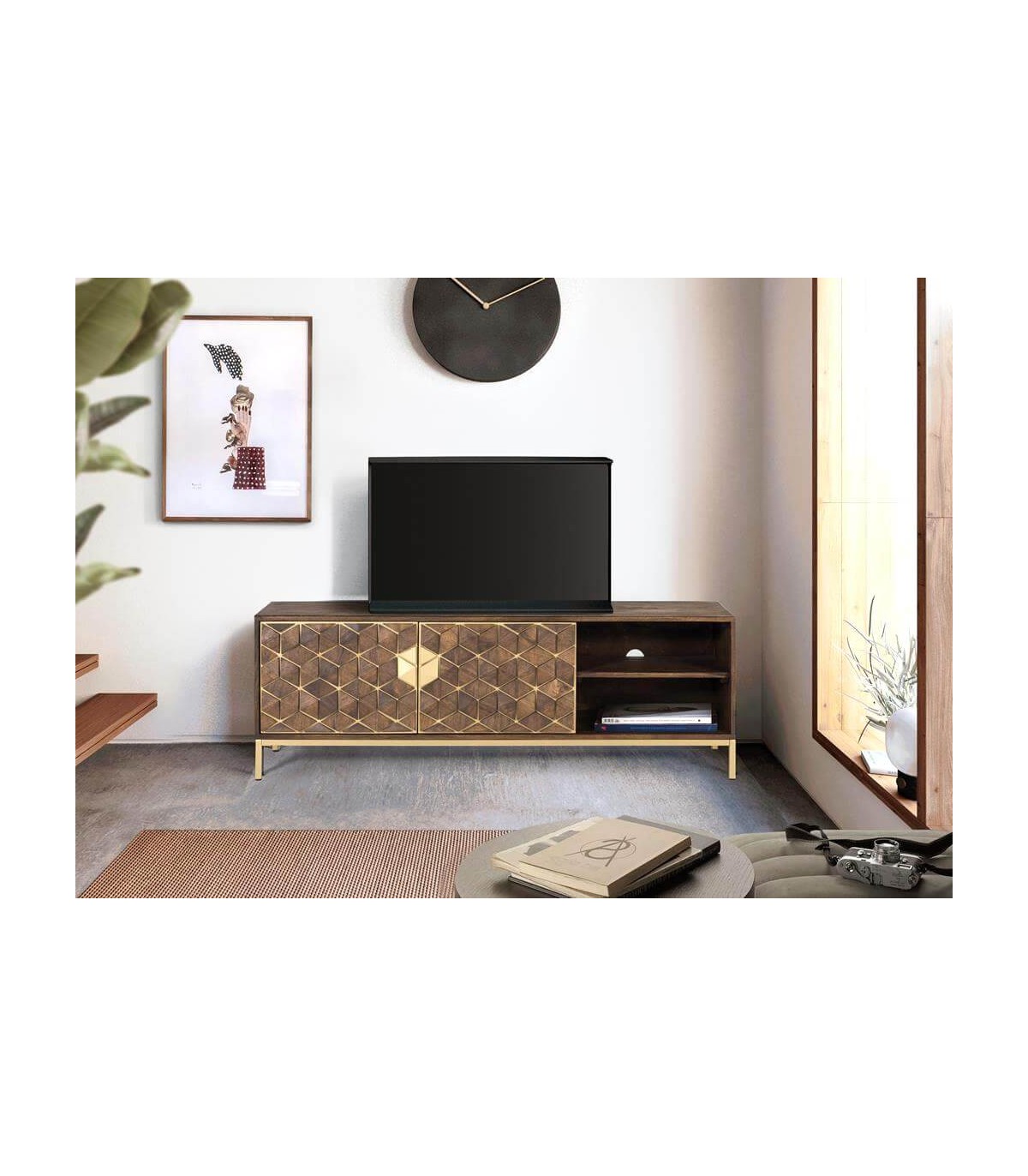 MUEBLE DE TV 145 X 40 ZENDA MADERA MANGO METAL DORADO