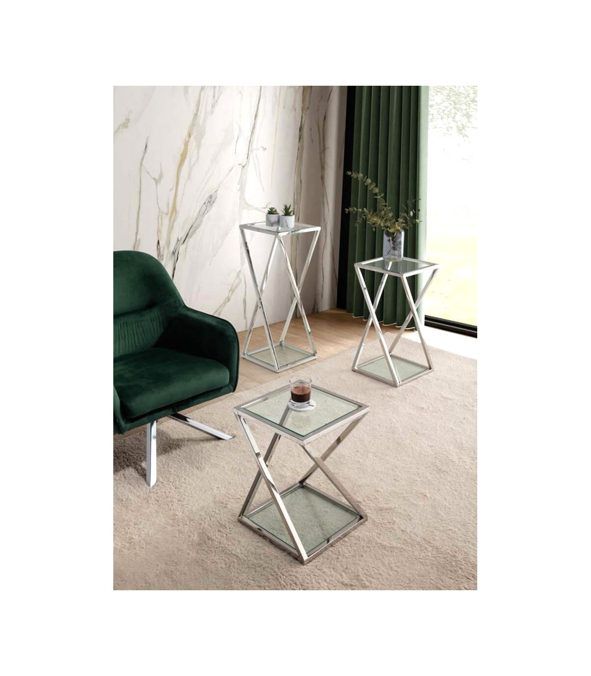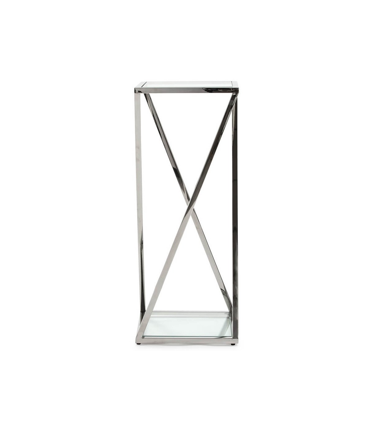 Pedestal de nuestra colección Steel, una colección que se caracteriza por sus estructuras en acero inoxidable cromadas y el cristal, una colección de muebles auxiliares atemporal, un acierto para cualquier decoración de estilo contemporáneo.