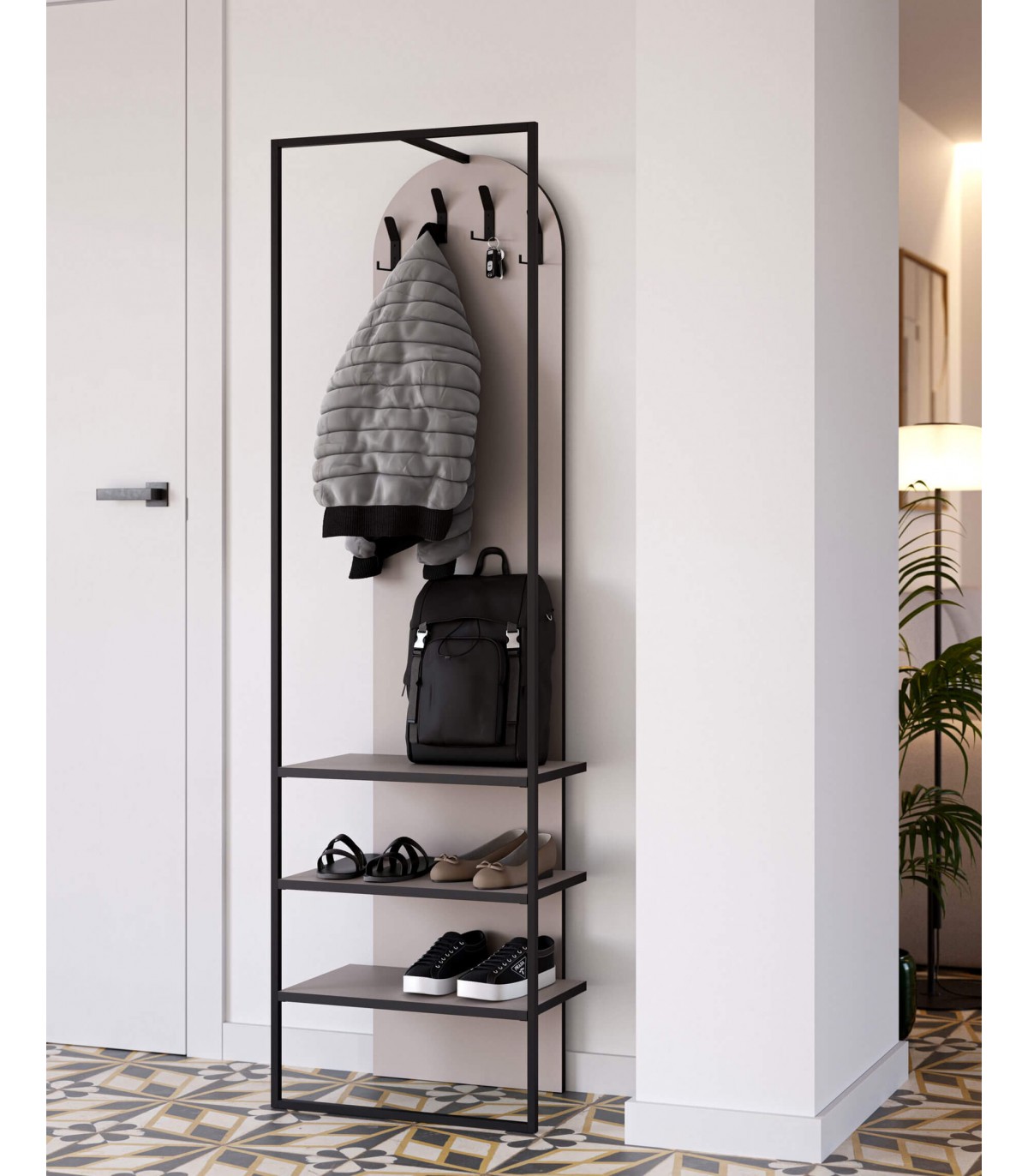 Perchero de Pie Anclable a la Pared en Melamina Color Topo y Metal Negro: Diseño Moderno y Funcional para Cualquier Espacio