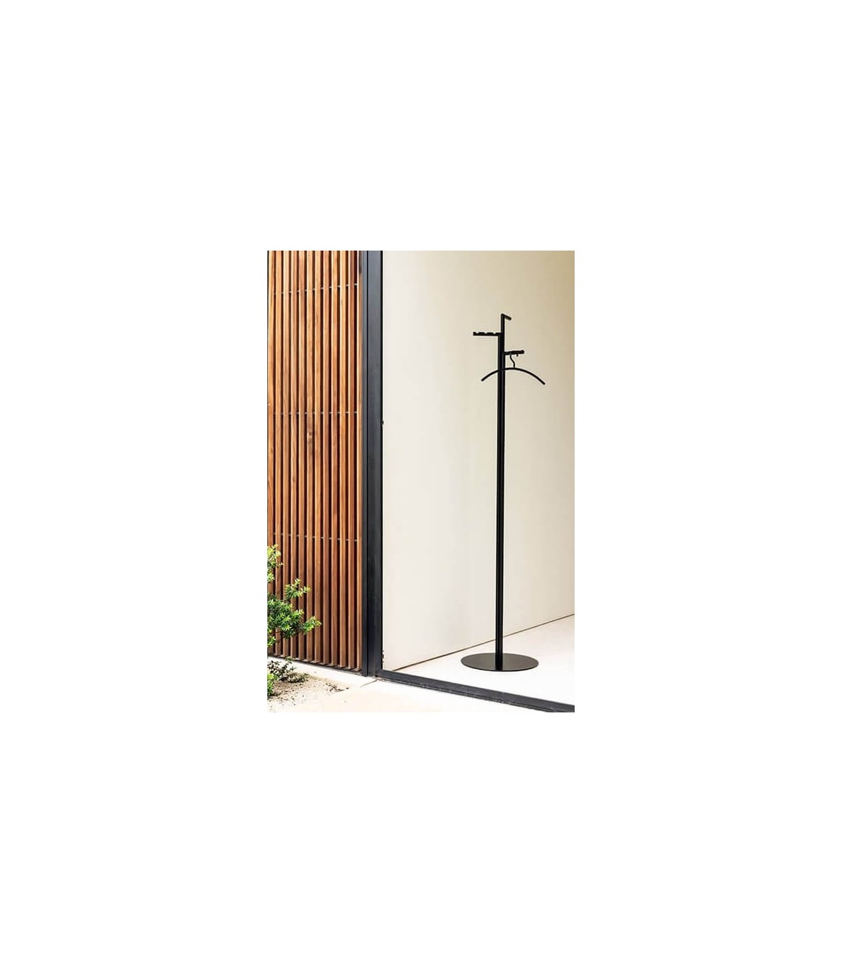Perchero de pie de diseño, con 3 colgadores múltiples para perchas realizado en metal acabado negro, El perchero de pie Versus es la solución perfecta para guardar abrigos no solo para pasillos del hogar sino también para oficinas, salas de conferencias y espacios públicos. Un clásico funcional.