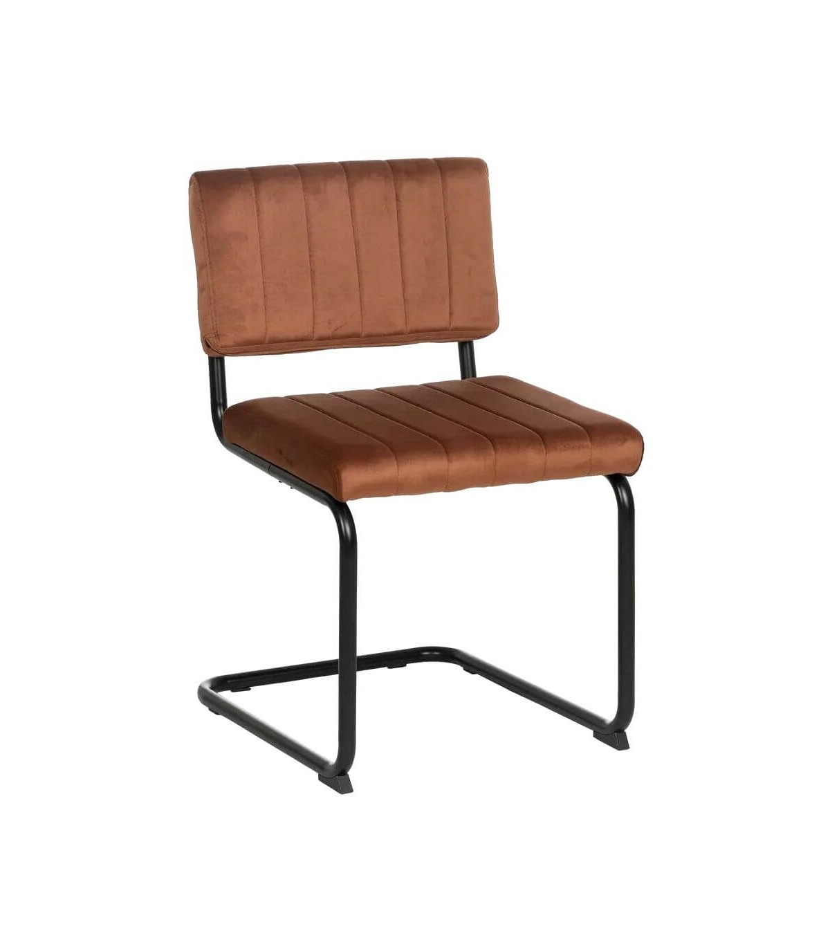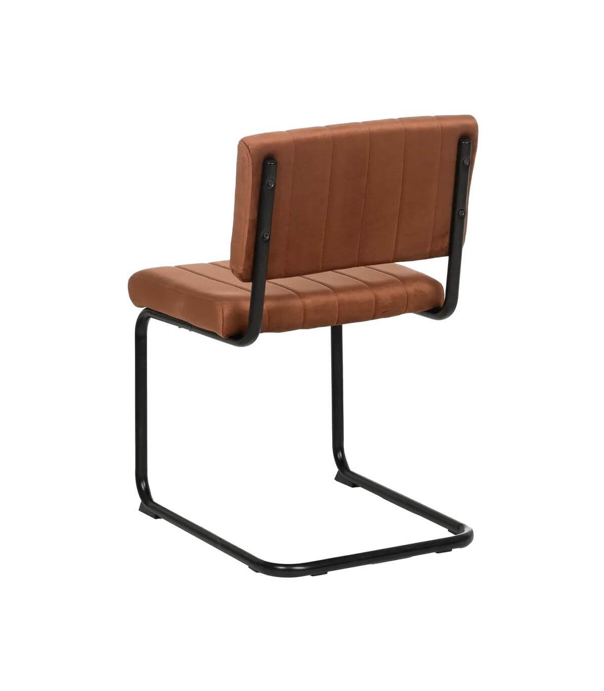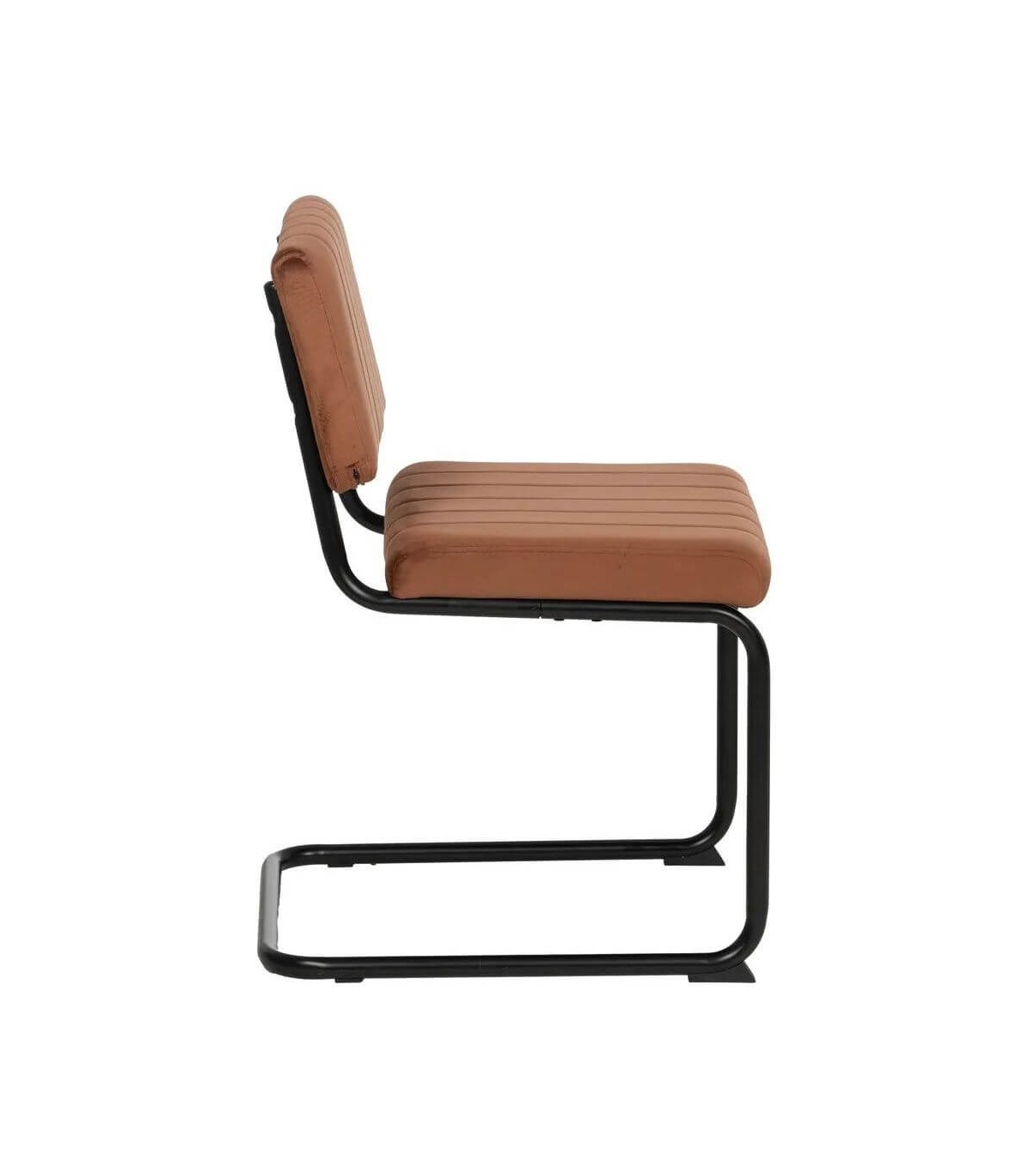 Silla realizada en metal negro con el asiento y el respaldo tapizado en color terracota, de diseño contemporáneo, muy cómoda al ser una estructura no rígida, muy práctica a la hora de la limpieza.