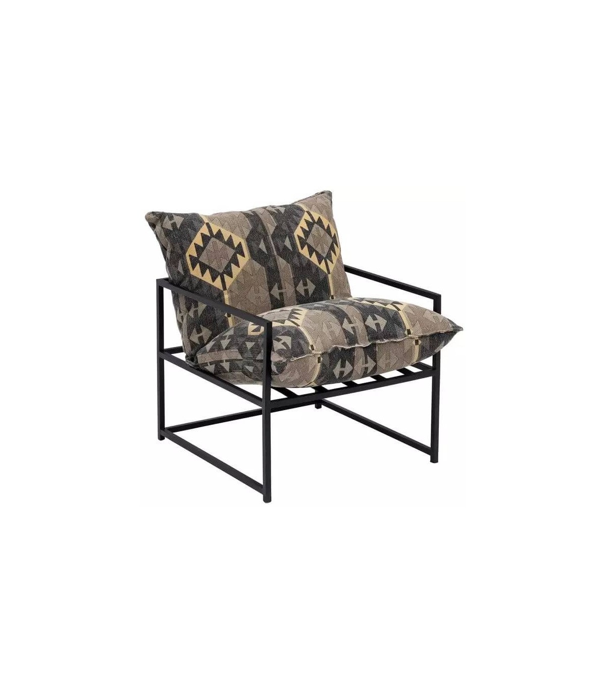 SILLON 70 X 84 X 86 KILIM AMARILLO TOPO Y NEGRO METAL NEGRO