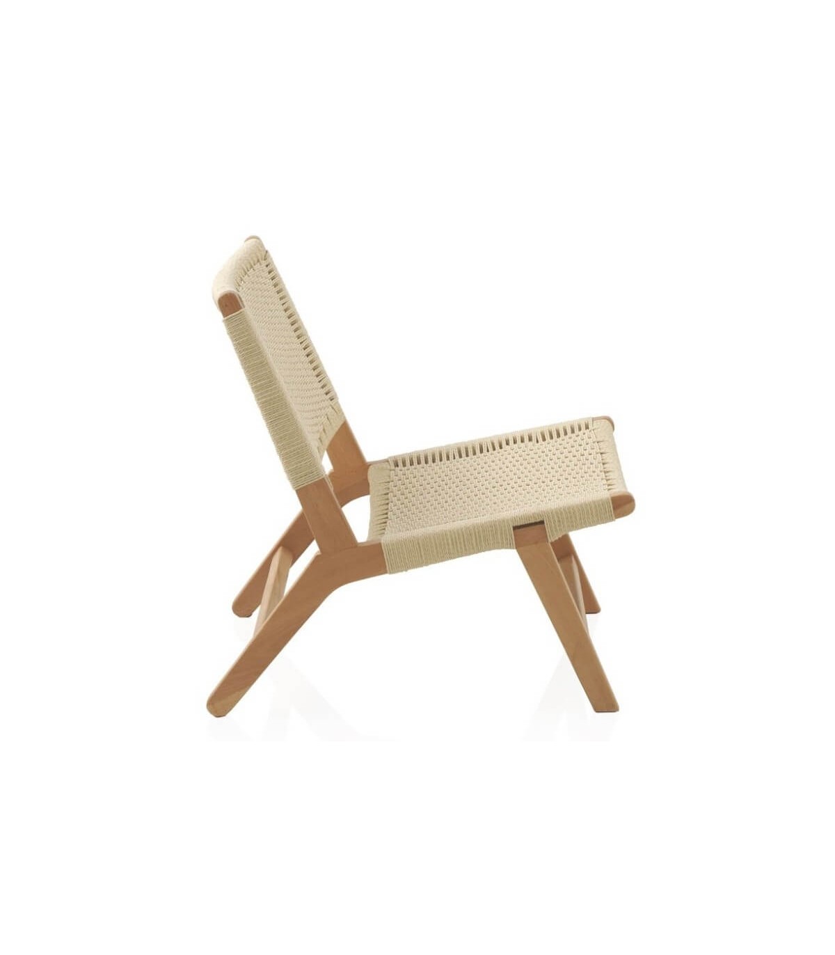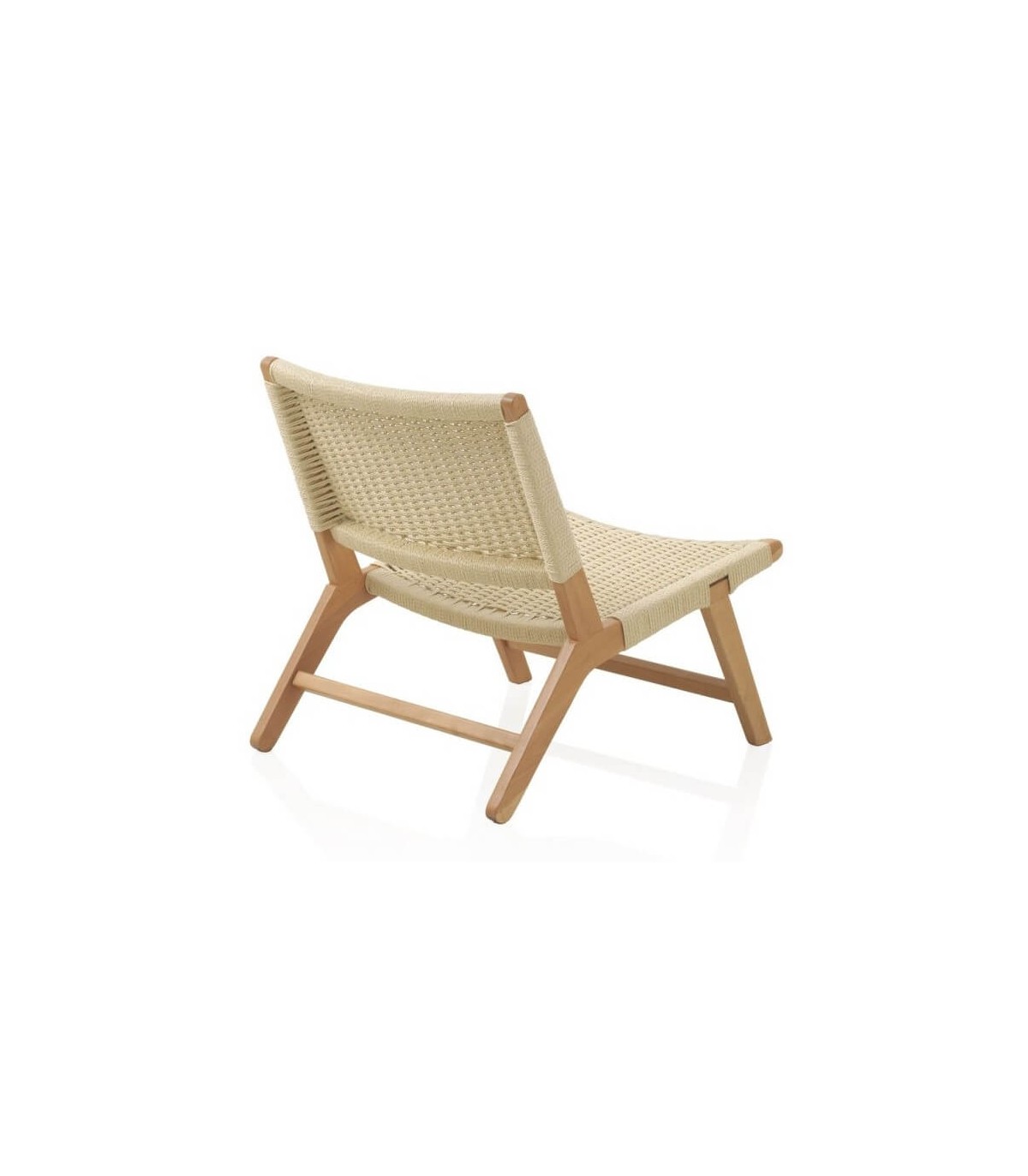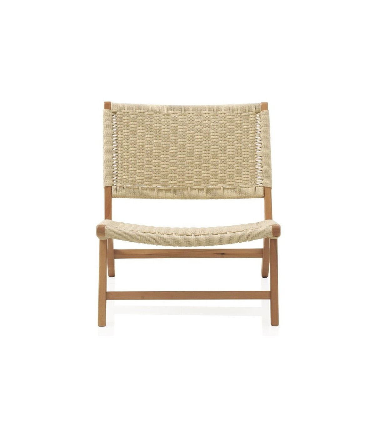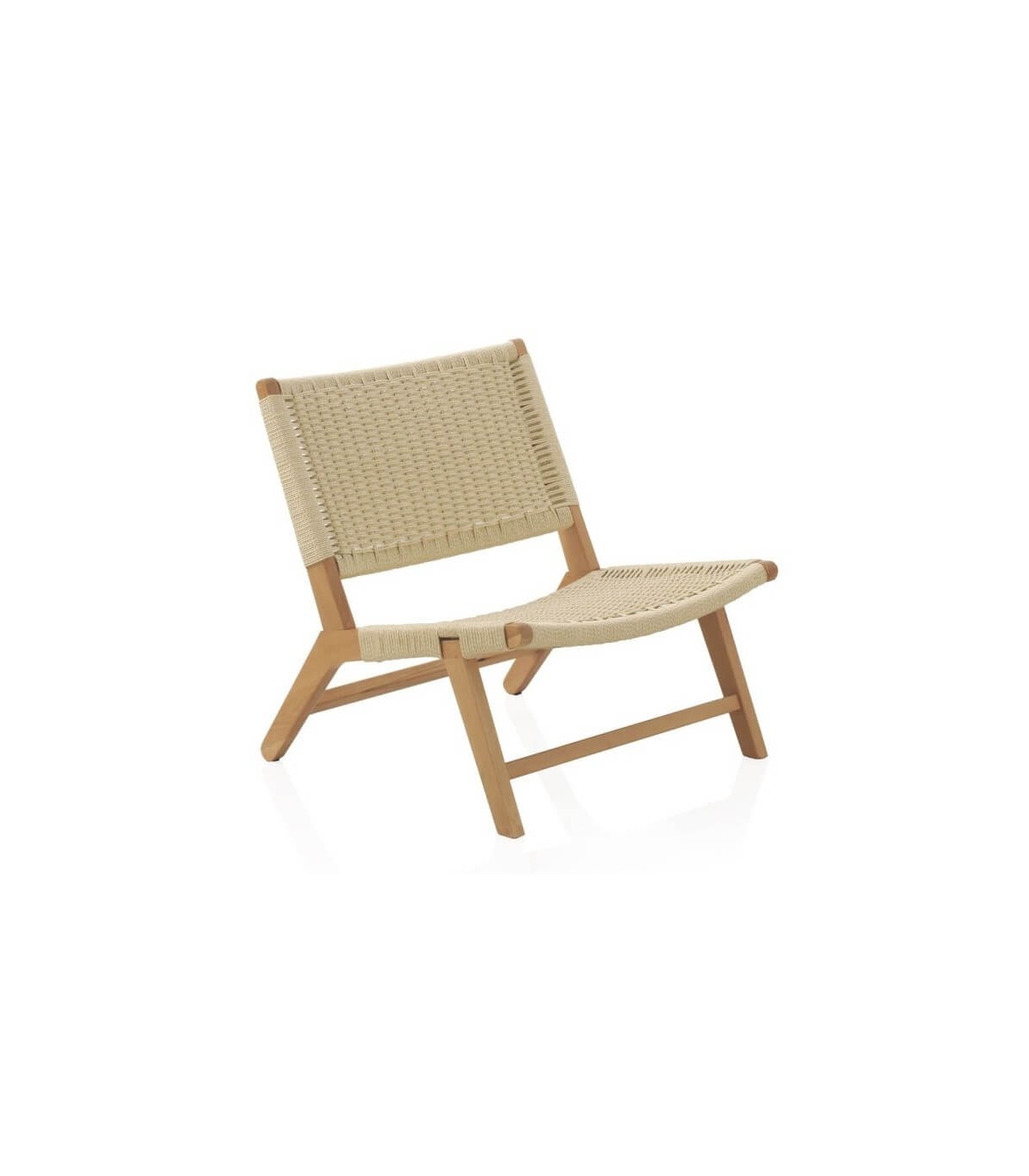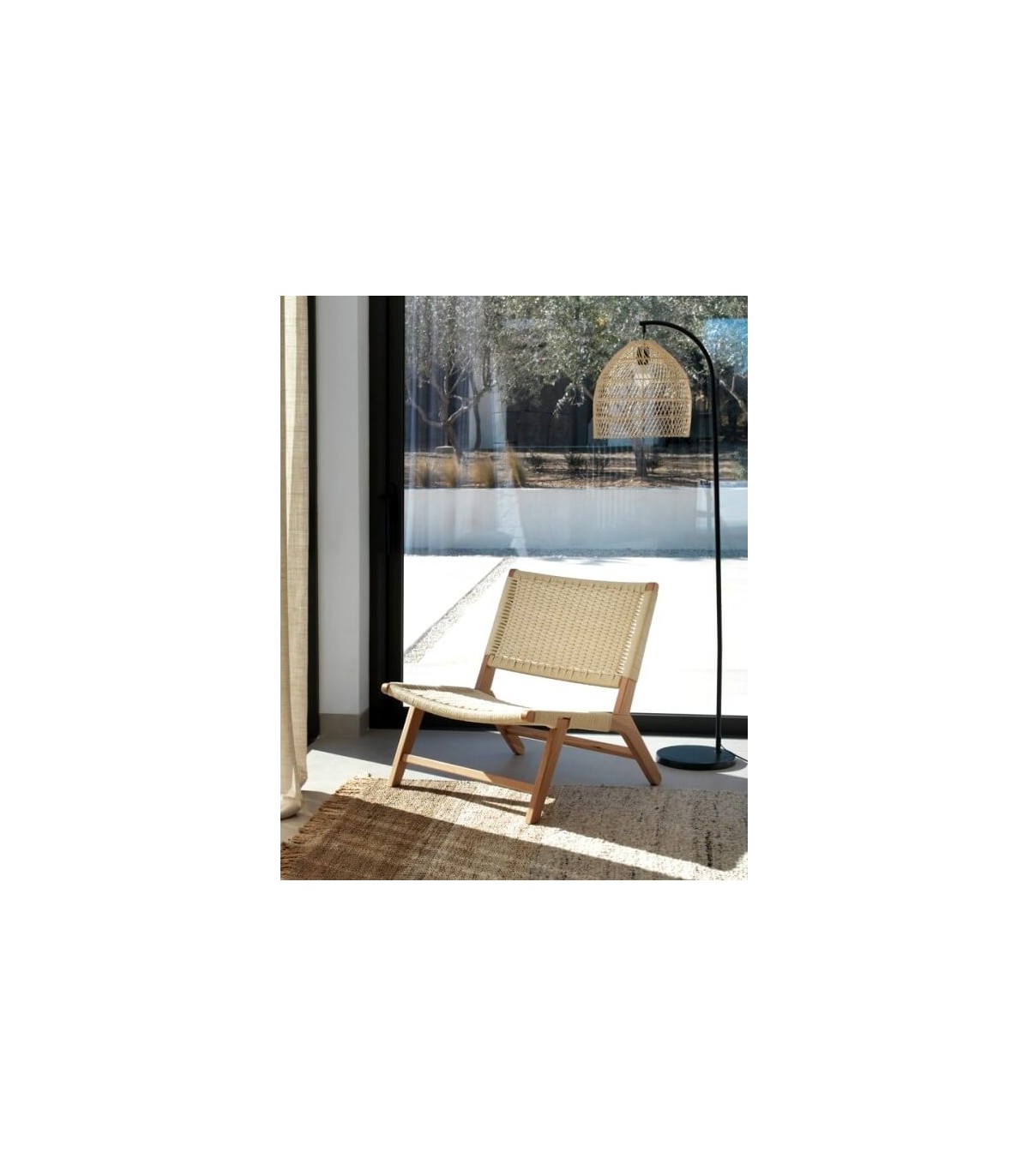 Bonito sillón realizado en madera de teca y cuerda natural, un sillón bajo muy confortable y de líneas elegantes. Su diseño sencillo y cómodo hacen de esta butaca una pieza protagonista en cualquier estancia del hogar.