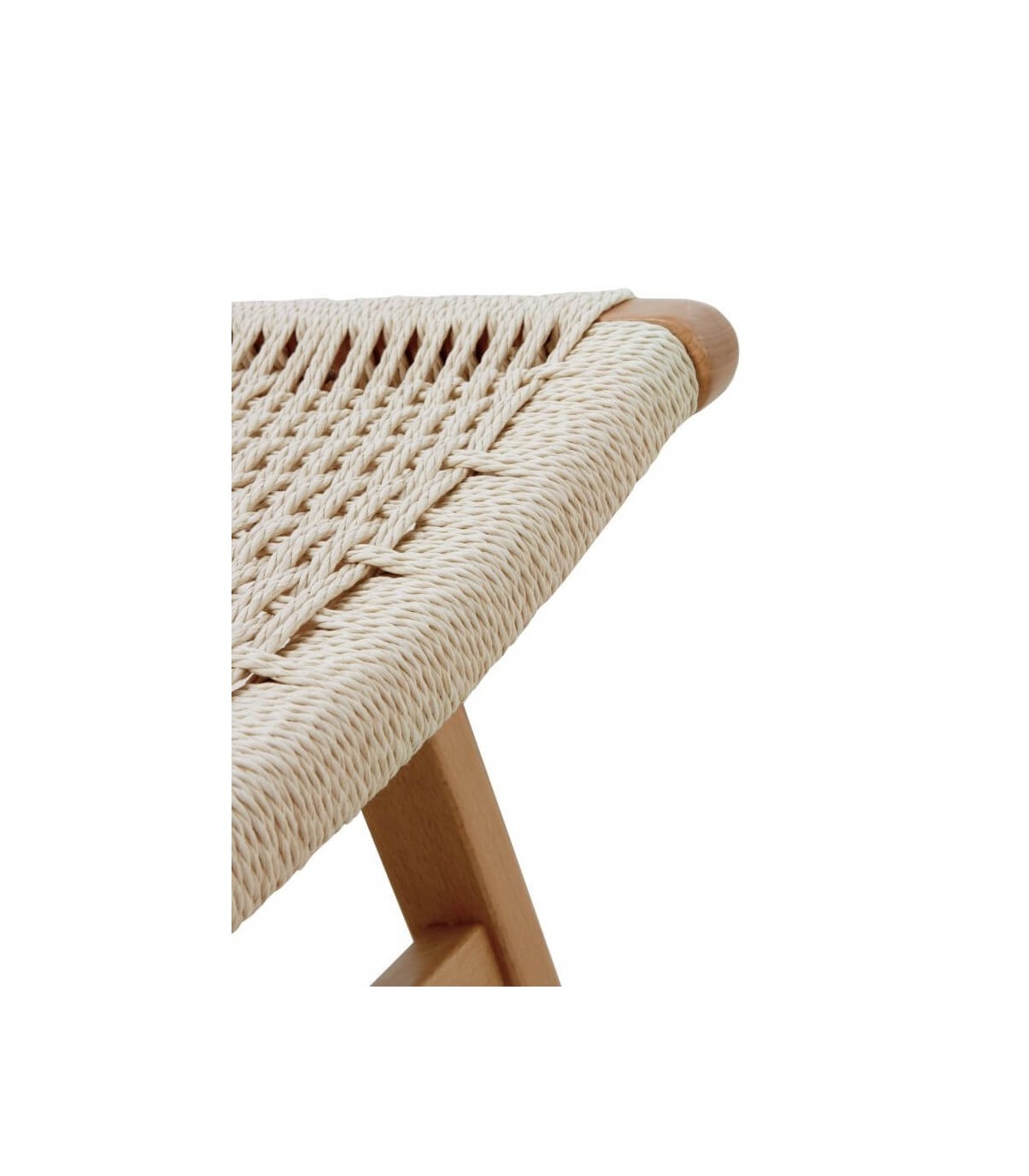 Acabado, madera de teca acabado natural, cuerda natural trenzada.