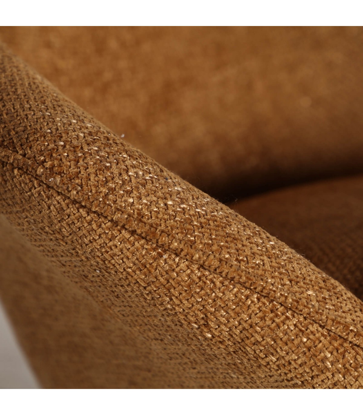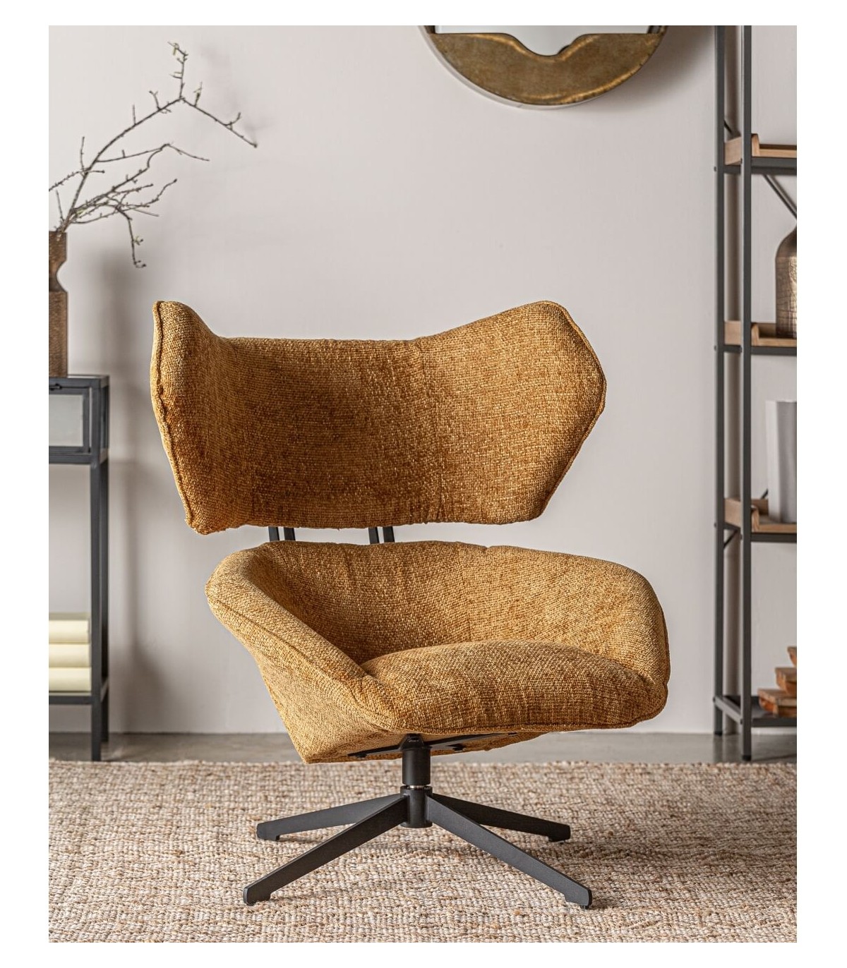 El sillón giratorio en color mostaza es una maravillosa pieza de estilo art decó que aportará elegancia y versatilidad a tu hogar, es una elección excepcional para tu espacio. Fabricado en suave chenilla y combinado con detalles de hierro en la parte inferior, este sillón es una combinación de comodidad y estilo. El color mostaza es sinónimo de carácter, lo que lo convierte en una elección acertada para cualquier habitación.
