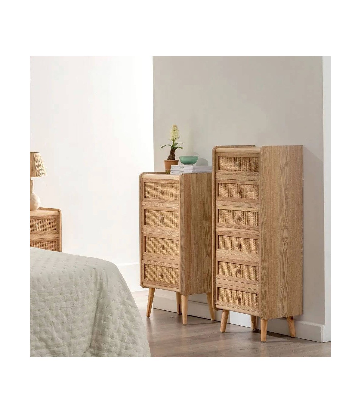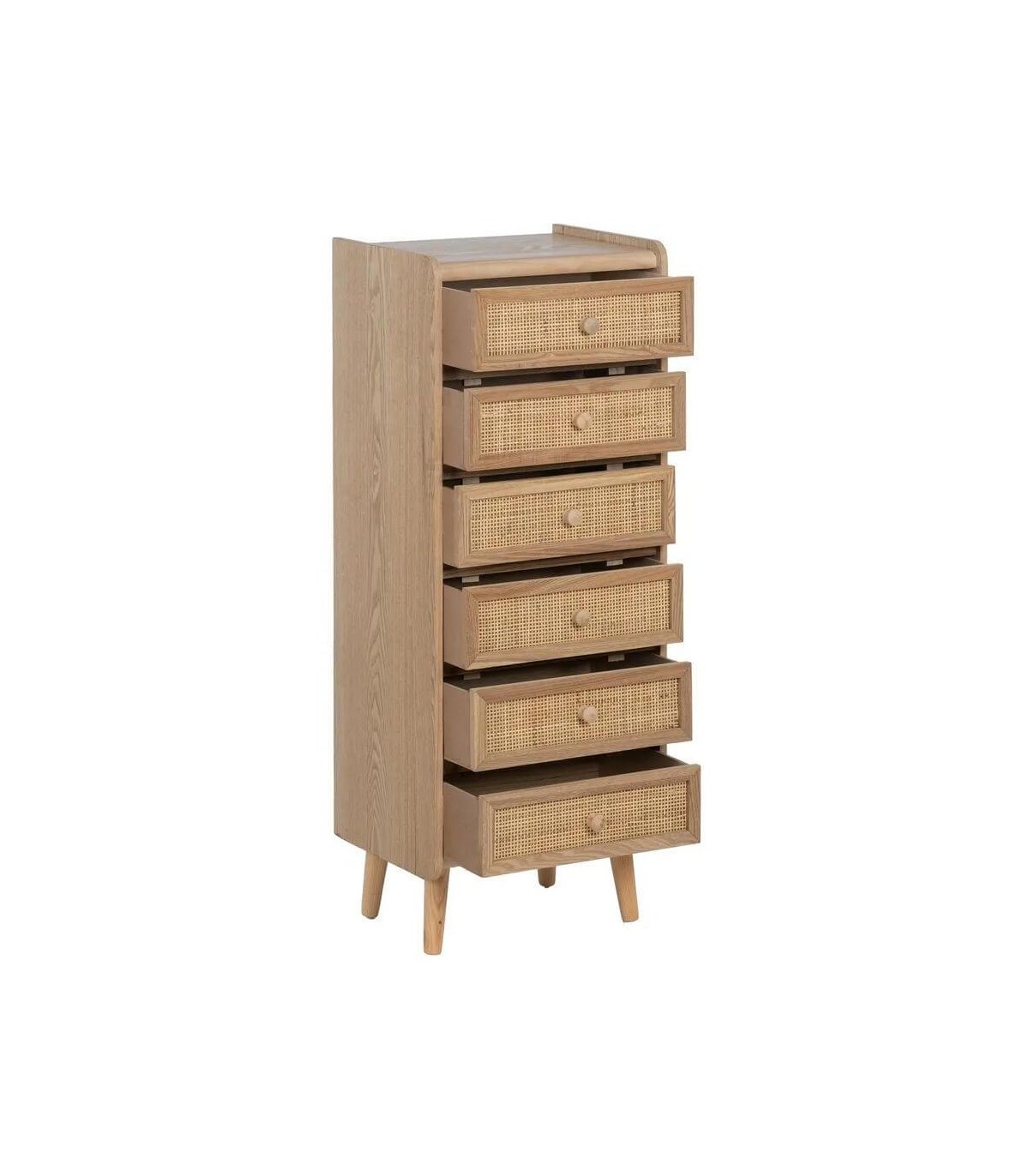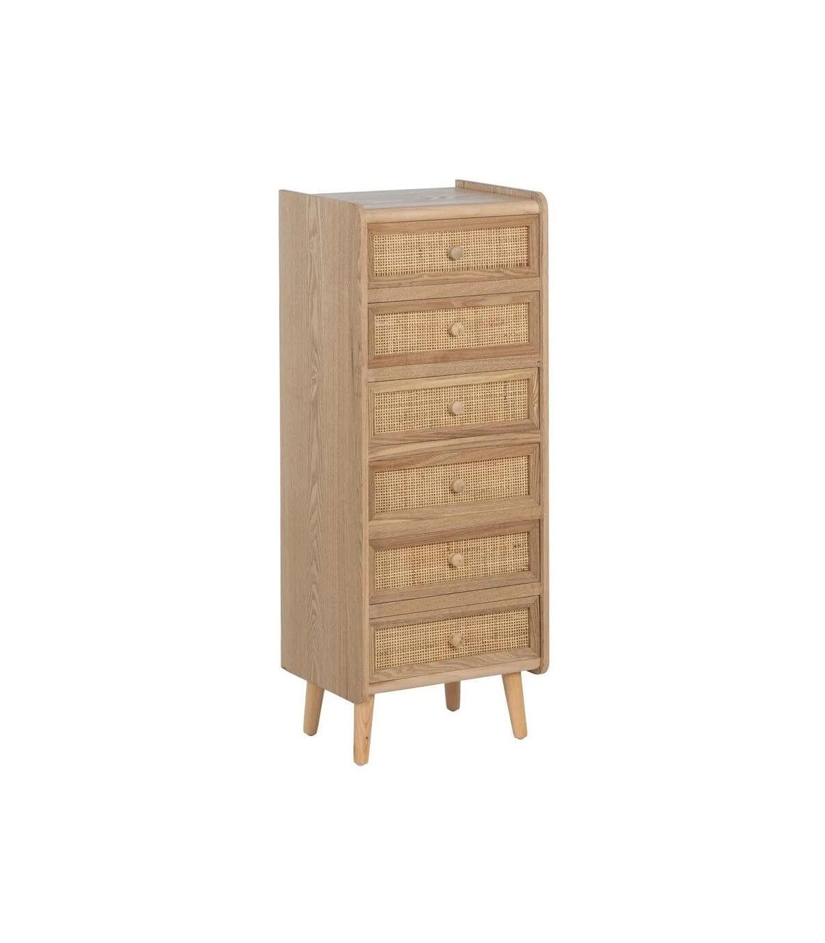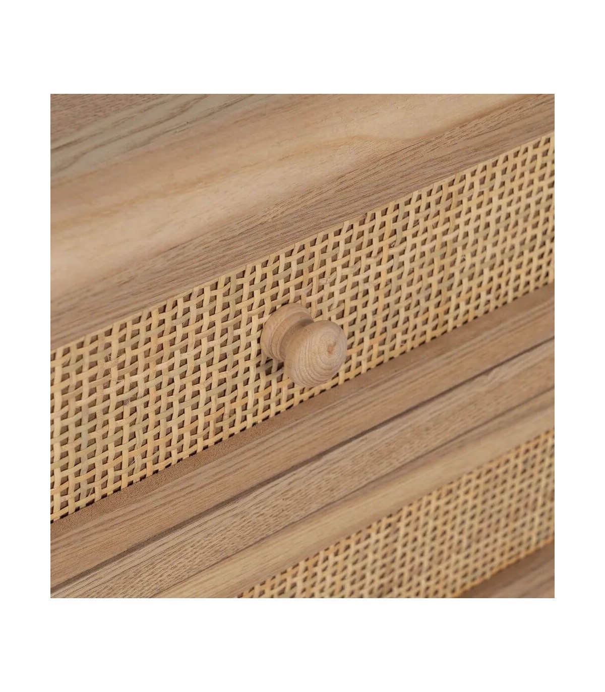 Sinfonier con 6 cajones realizada en madera de paulonia y ratán naturales, una sinfonier ligero de buena capacidad muy decorativo.