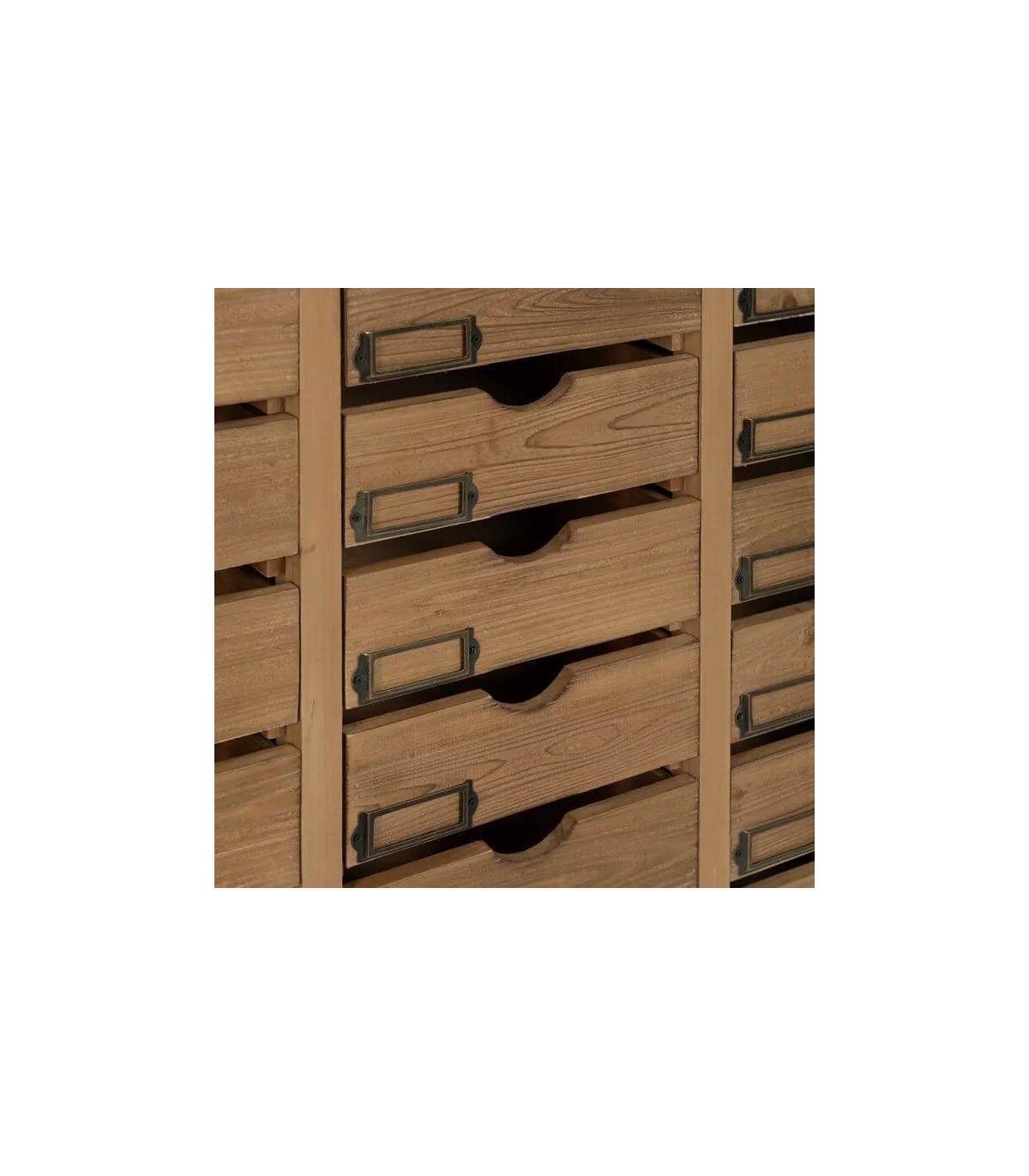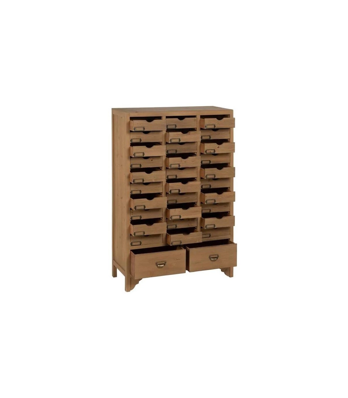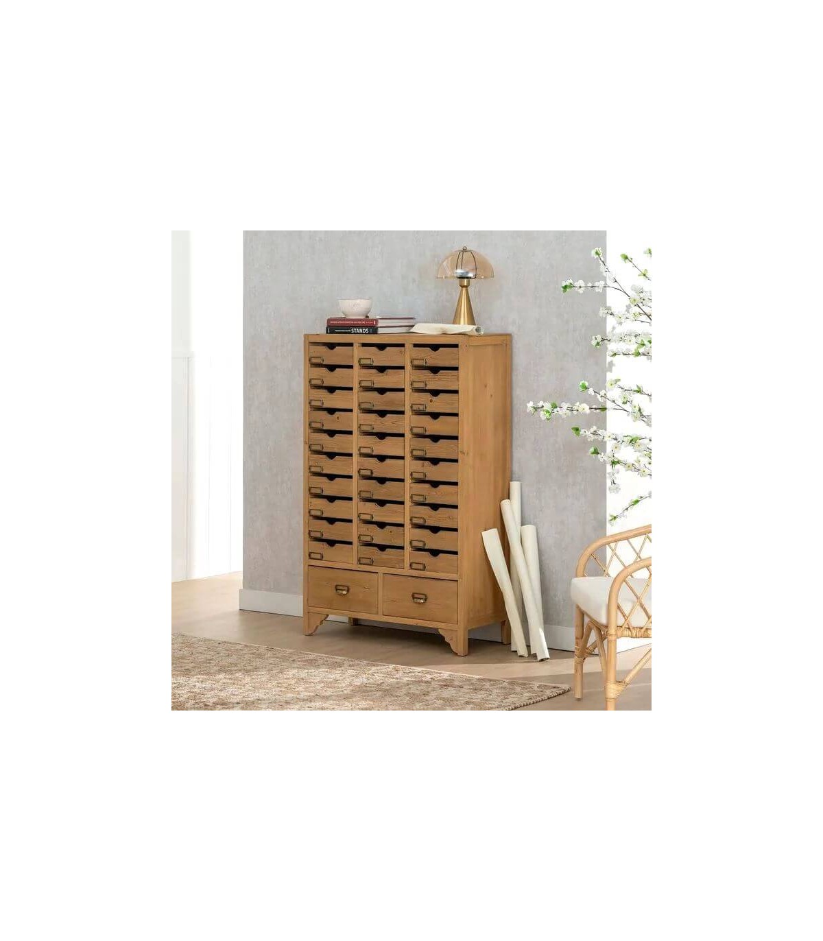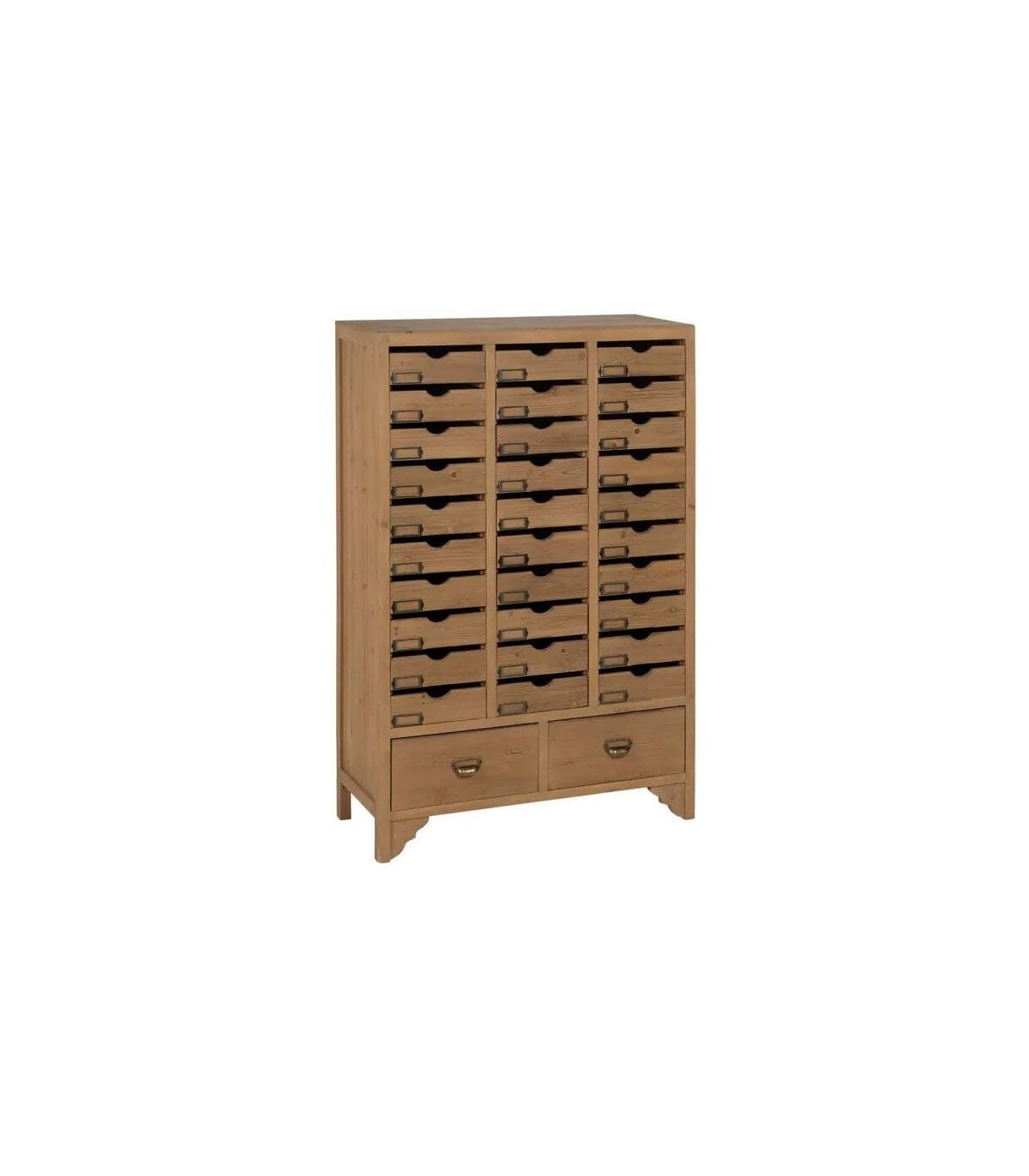 Sinfonier de estilo colonial con 30 cajones, realizado en madera de abeto acabado natural tiradores metal oro viejo, un mueble práctico y decorativo ideal para decorar y aprovechar, espacios auxiliares.