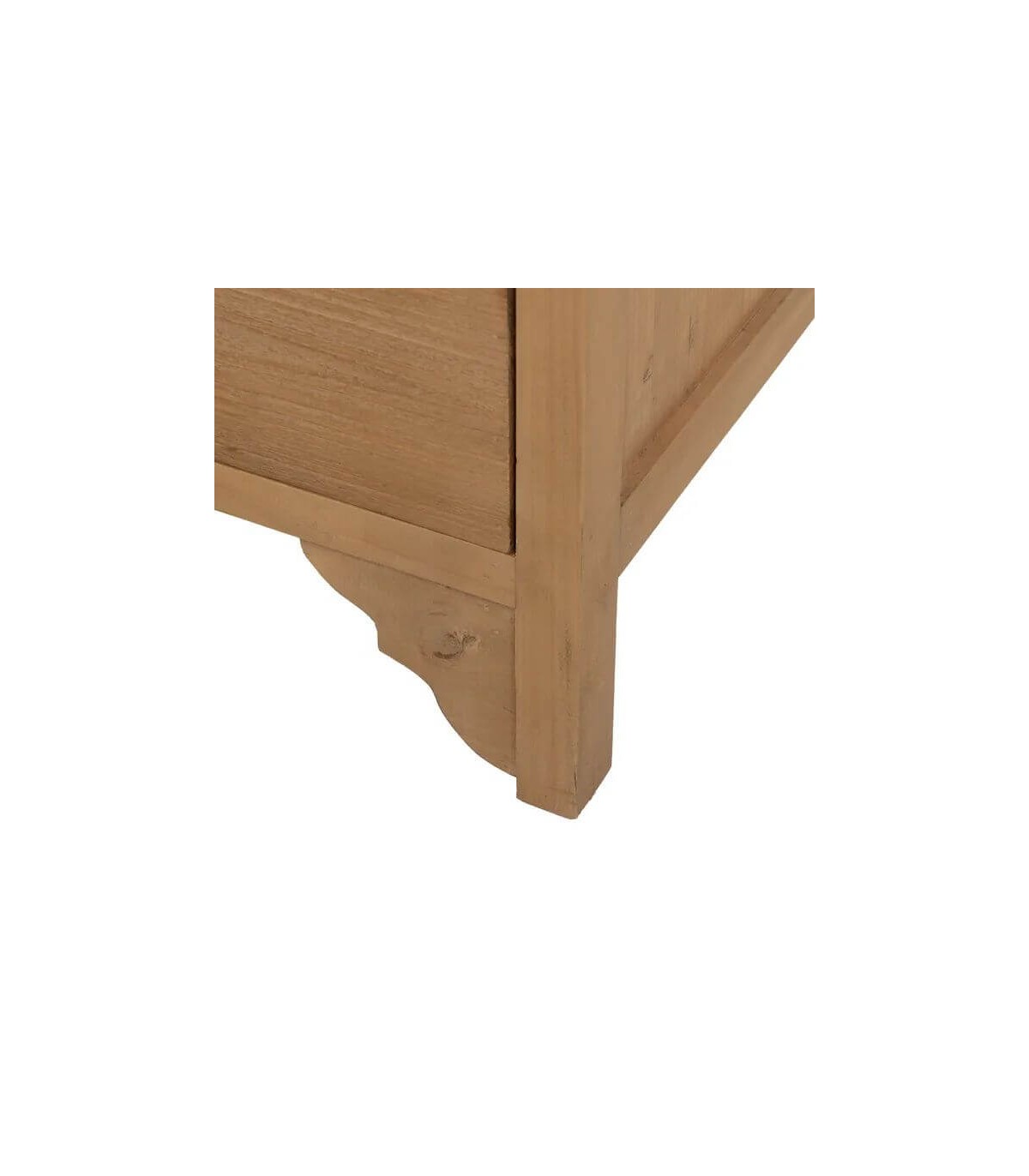 Acabado, madera de abeto acabado natural, tiradores metal oro viejo.
