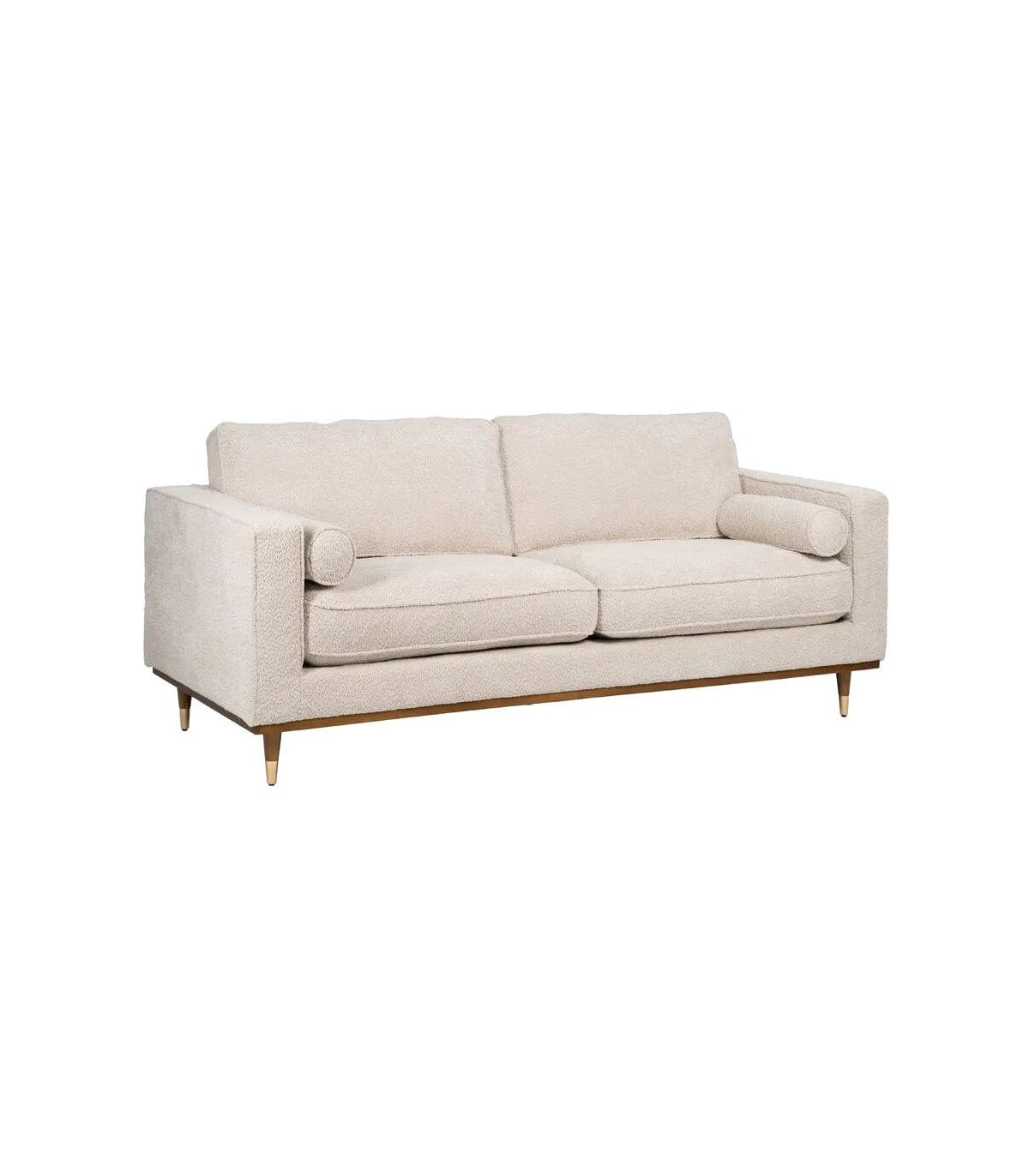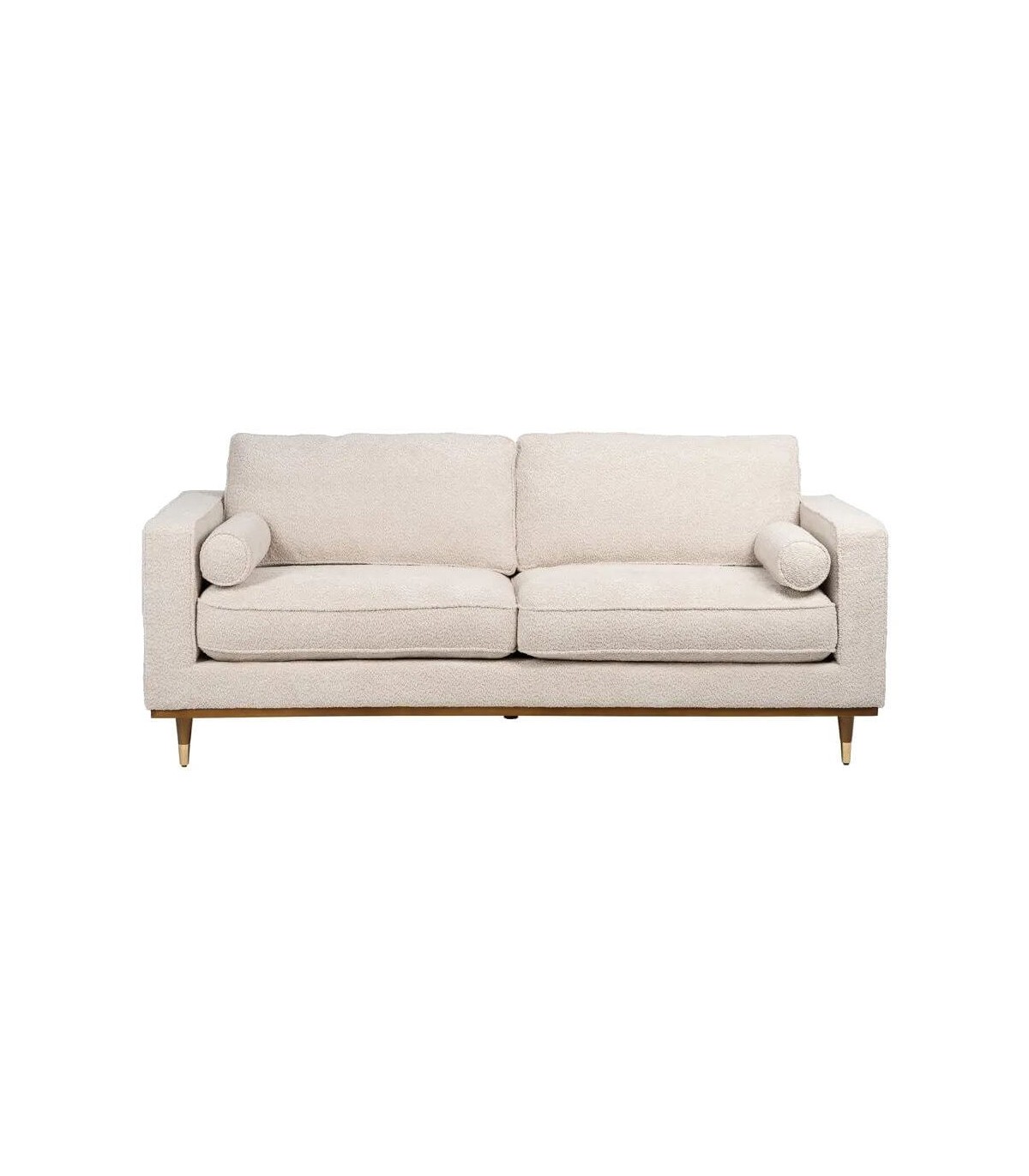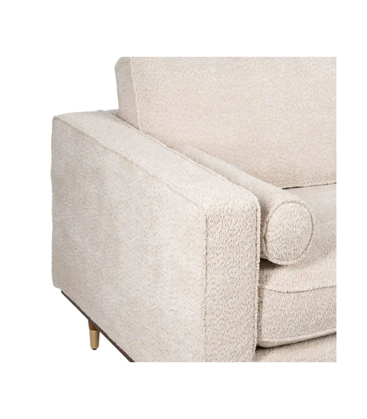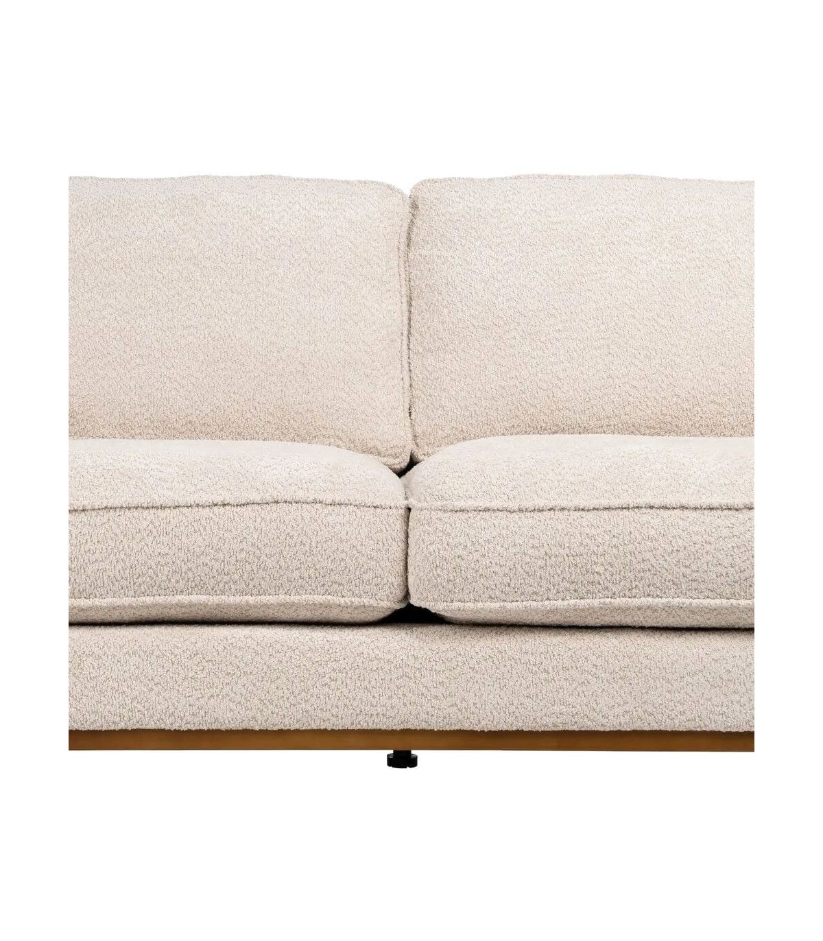 🛋️ Sofá 3 Plazas XL Tapizado Blanco Roto con Patas de Madera y Detalles Dorados – Estilo Contemporáneo Sofisticado ✨