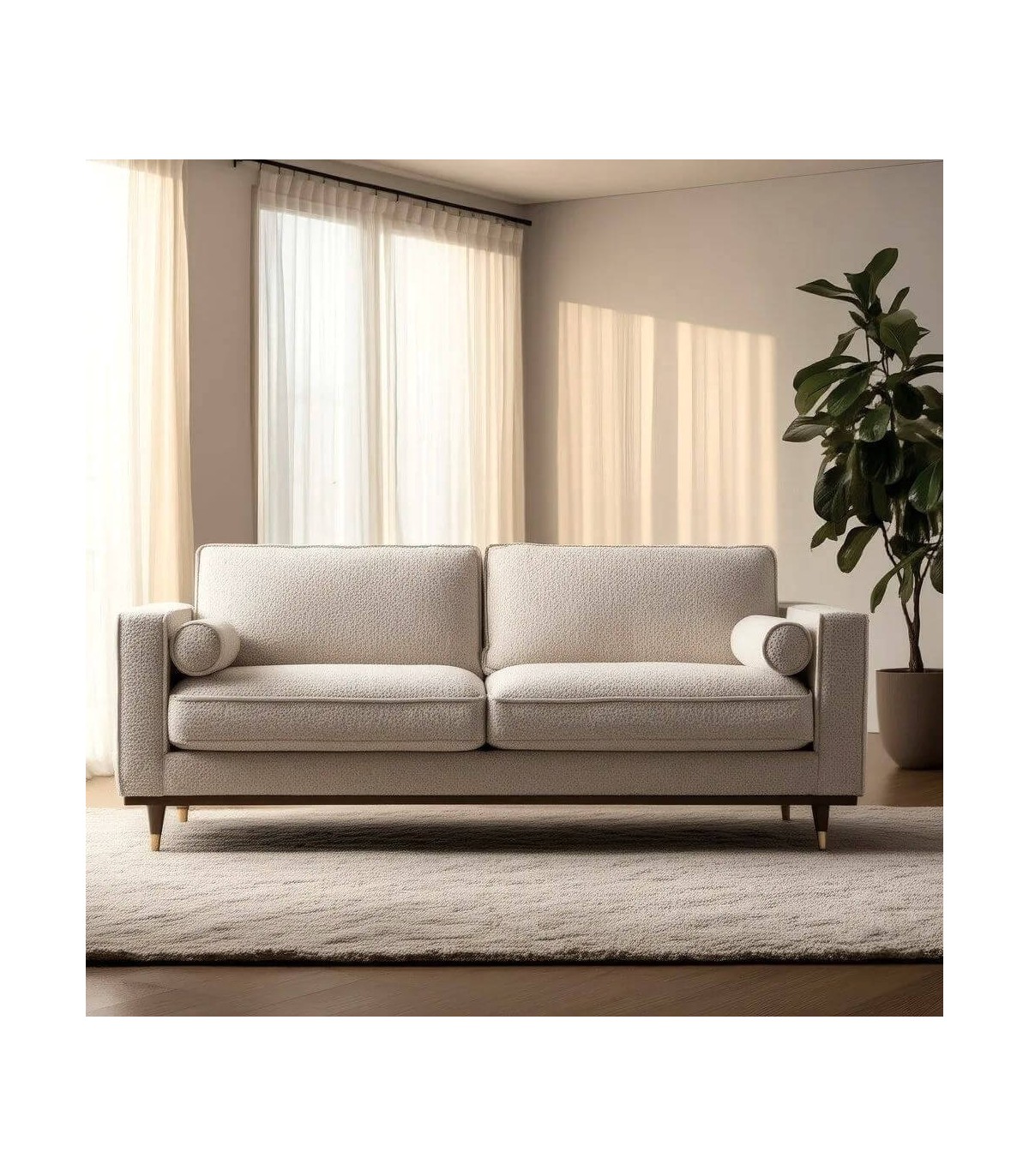 SOFA 3 PLAZAS 215 X 91 X 84 PREMIUM TAPIZADO EN BLANCO ROTO PATAS MADERA