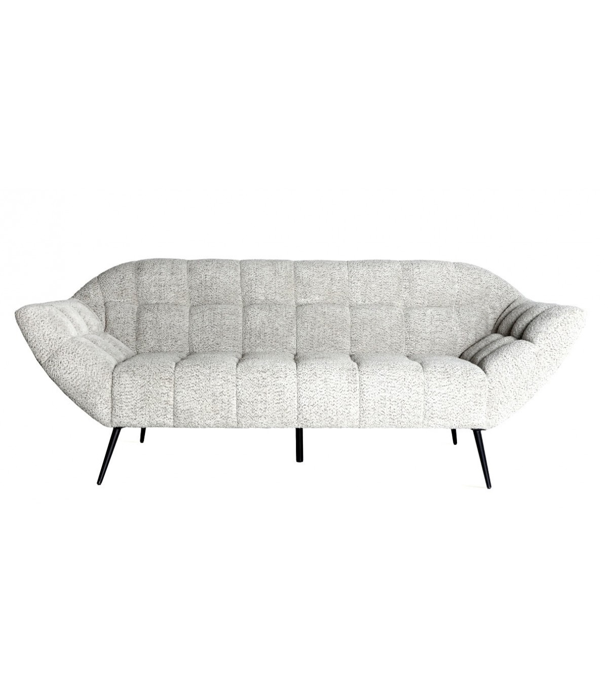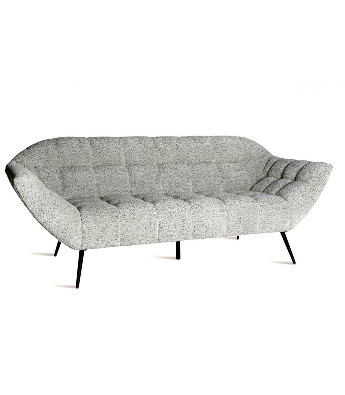 Sumérgete en la sofisticación y el confort con este sofá de 3 plazas tapizado en chenilla gris, una pieza de diseño moderno que combina líneas envolventes y un acabado texturizado para un estilo elegante. Su estructura robusta y asiento acolchado garantizan una comodidad excepcional, mientras que sus patas en color negro aportan un toque contemporáneo.