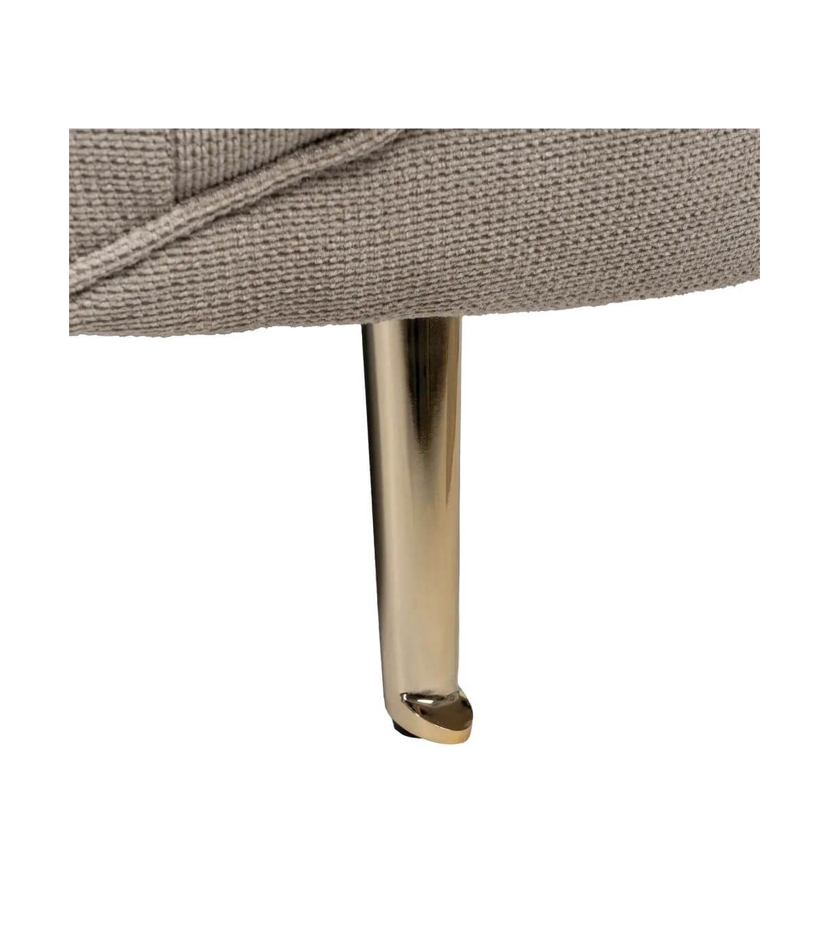 🎨 Acabado: Estructura tapizada chenilla color topo, patas en metal dorado