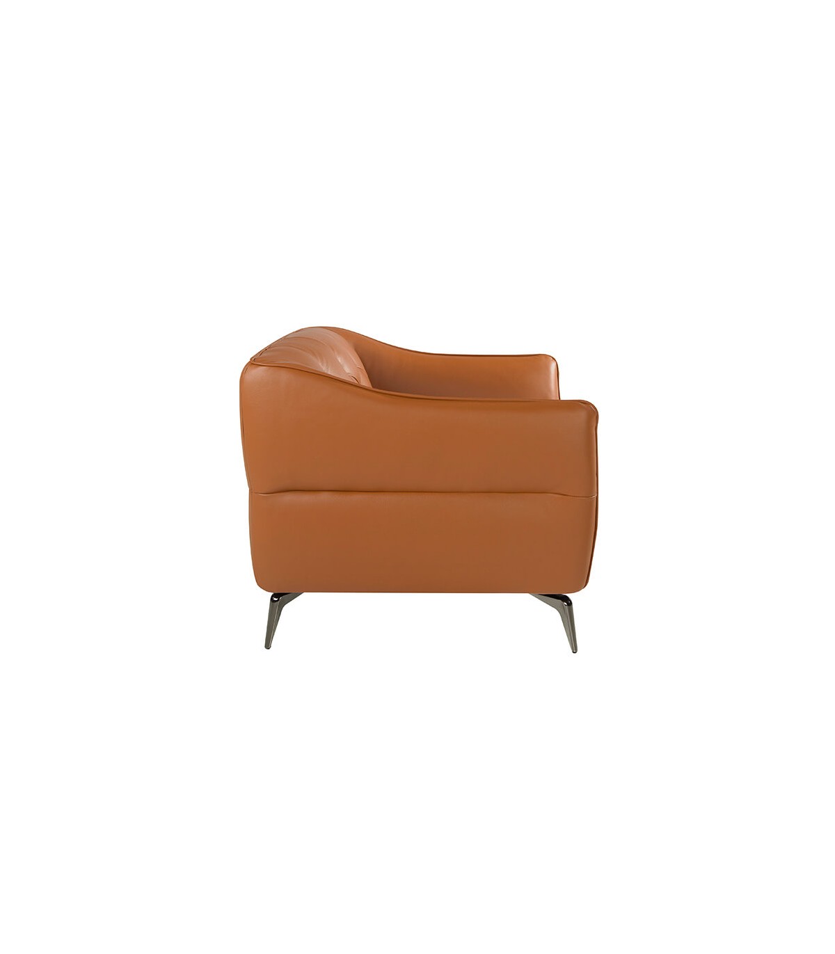 Acabado, piel color camel earth clay, patas acero inoxidable oscurecido.