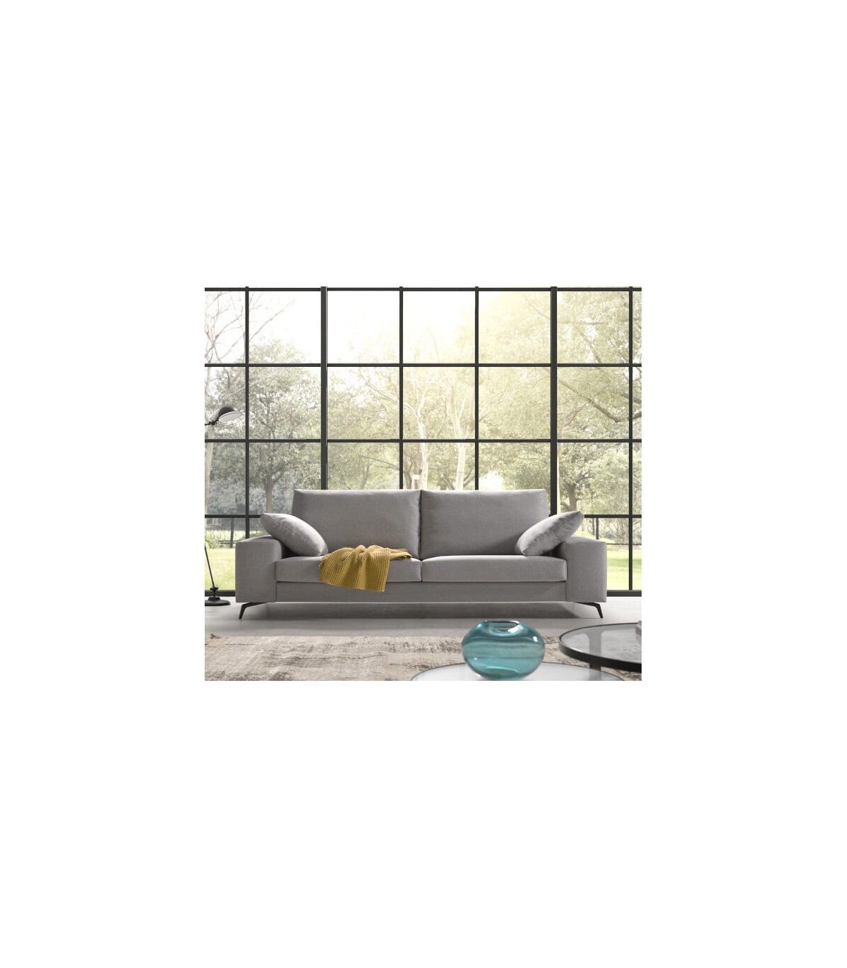 Sofá modelo Yiana muy cómodo, de fabricación nacional y muy buena calidad, disponible en un amplio catálogo de telas, con una variedad de medidas y dos opciones de patas y brazos para que puedas elegir el mejor diseño para tu hogar.