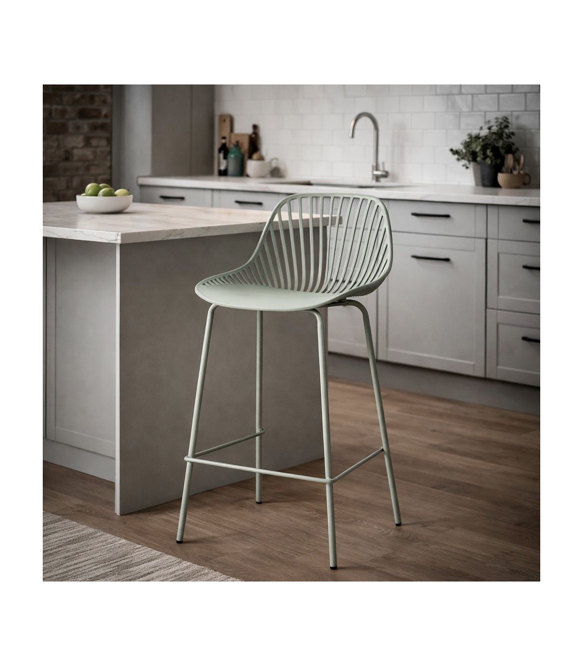 Taburete de estilo nórdico pensado para aportar funcionalidad y ligereza visual en espacios actuales. El diseño de líneas curvas crea una silueta cómoda y equilibrada, fácil de integrar en cocinas y barras. La estructura metálica aporta estabilidad y resistencia para el uso diario.