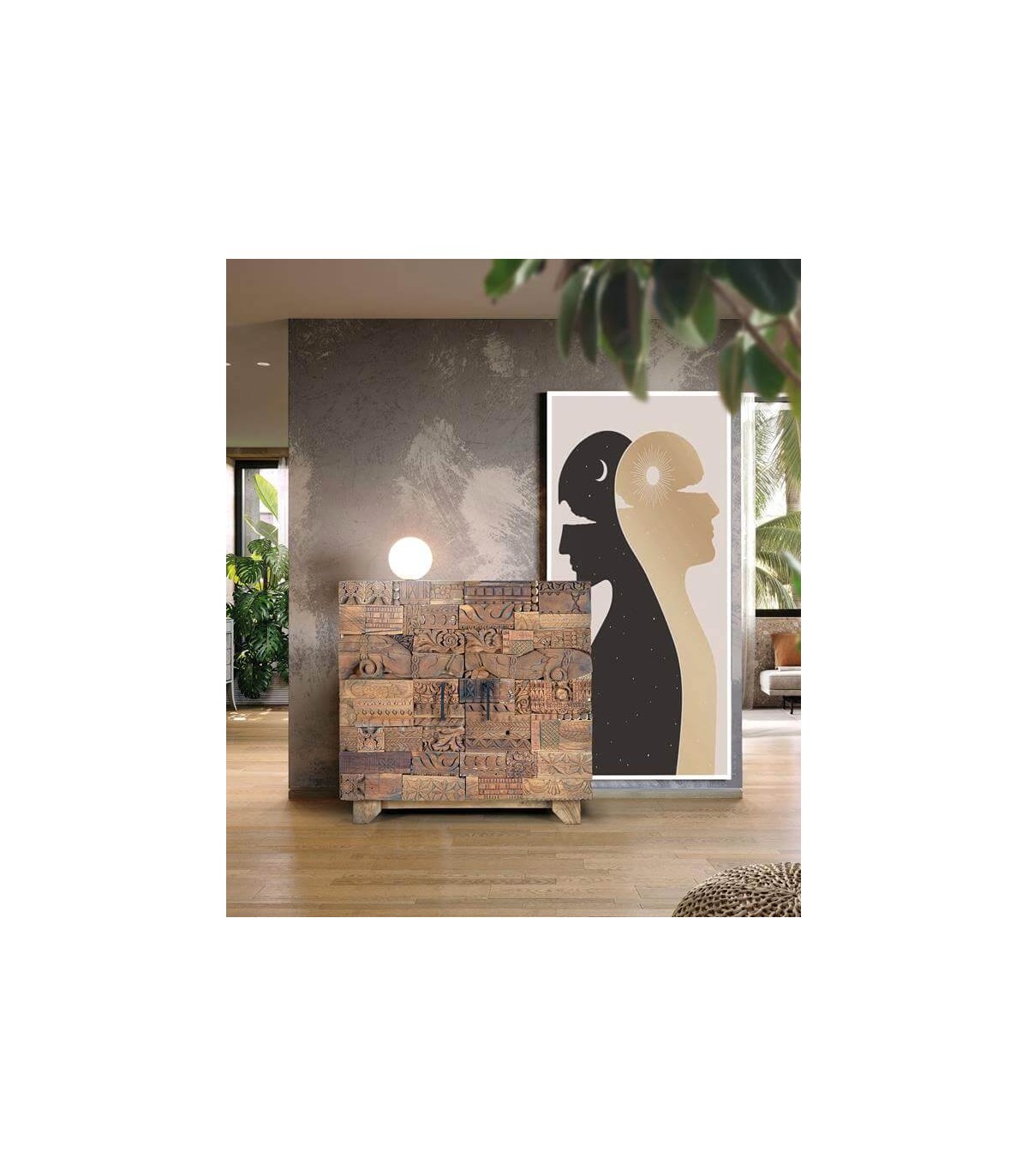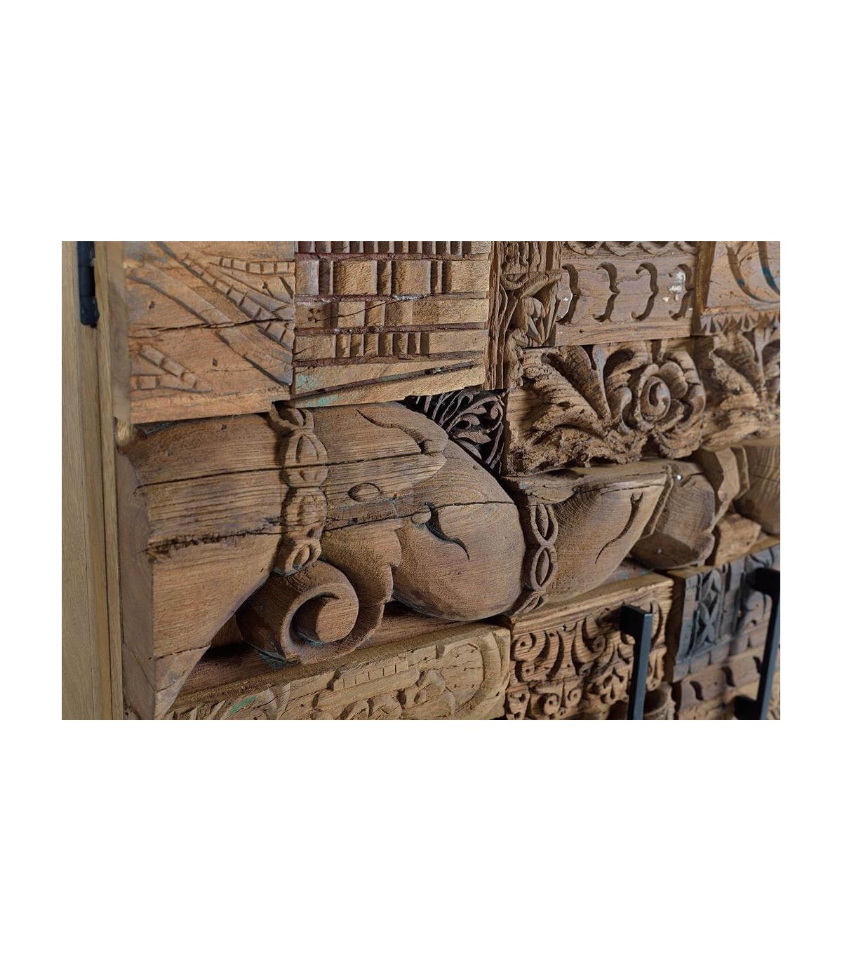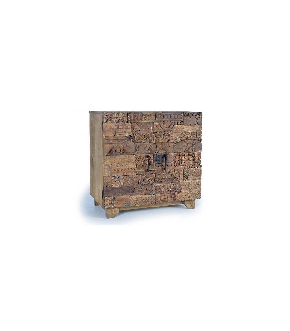 Taquillón realizado artesanalmente en madera de mango reciclada acabado natural, un gran mueble de estilo étnico que a parte de capacidad aporta mucho carácter al espacio para decorar.