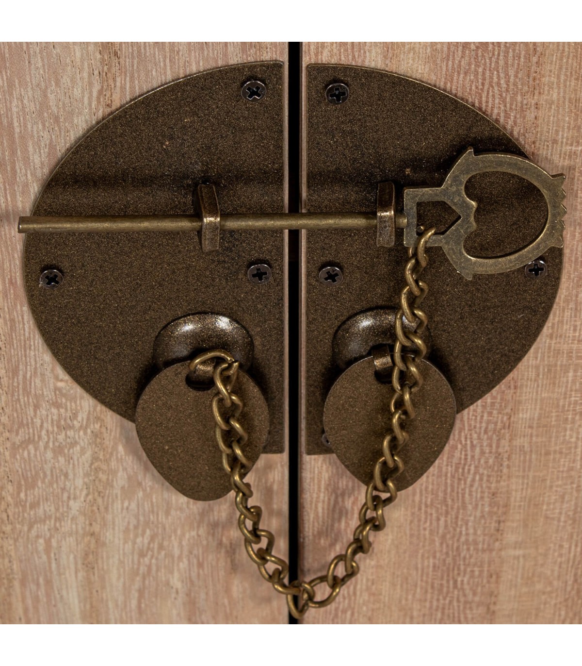 Los tiradores metálicos curvados y el cierre central aportan autenticidad y equilibrio visual a la pieza. Perfecto como mueble auxiliar en pasillos, salones o dormitorios, aporta orden, carácter y un toque exótico sin perder naturalidad. Un taquillón funcional y decorativo que combina elegancia artesanal con sobriedad contemporánea.
