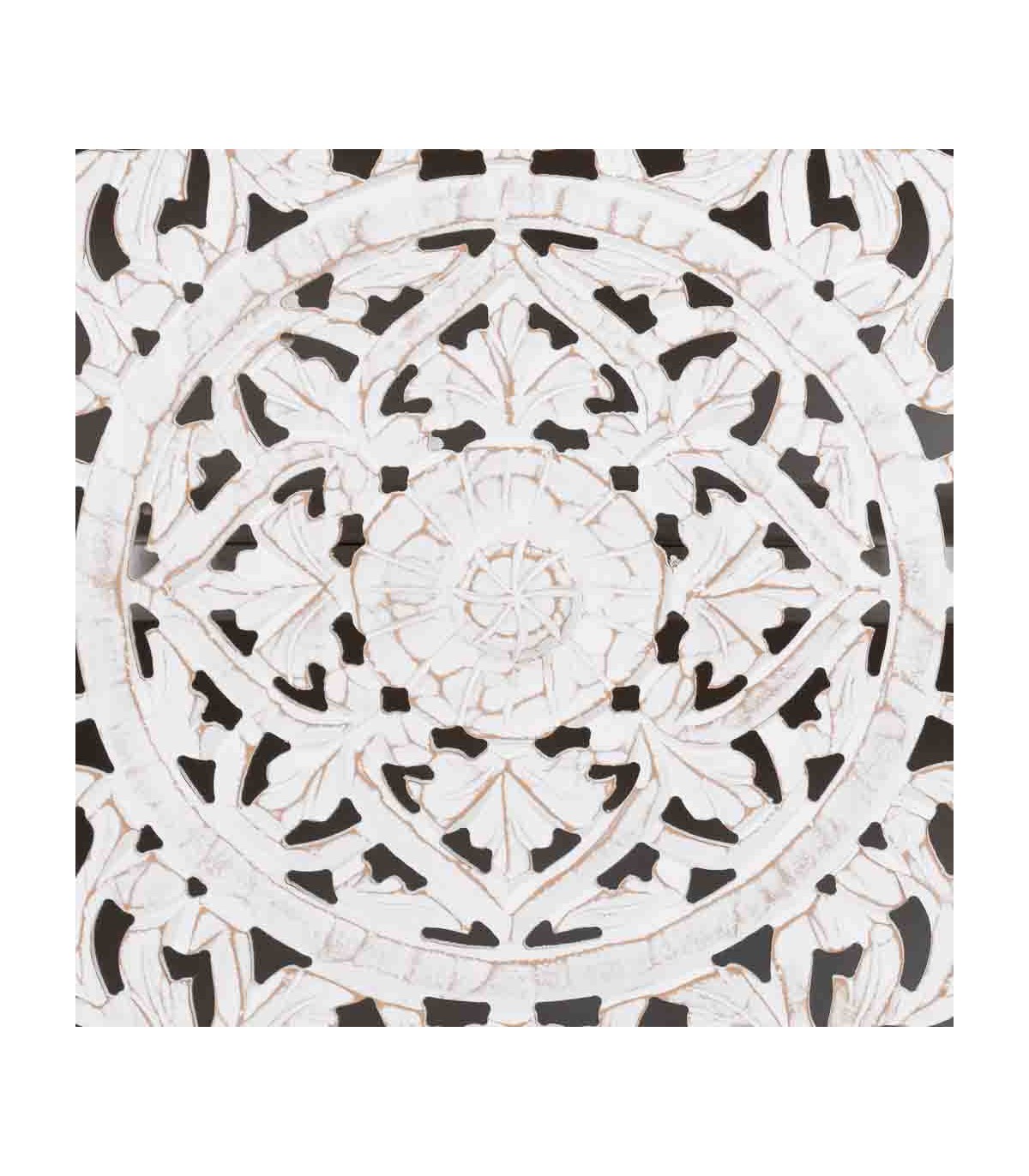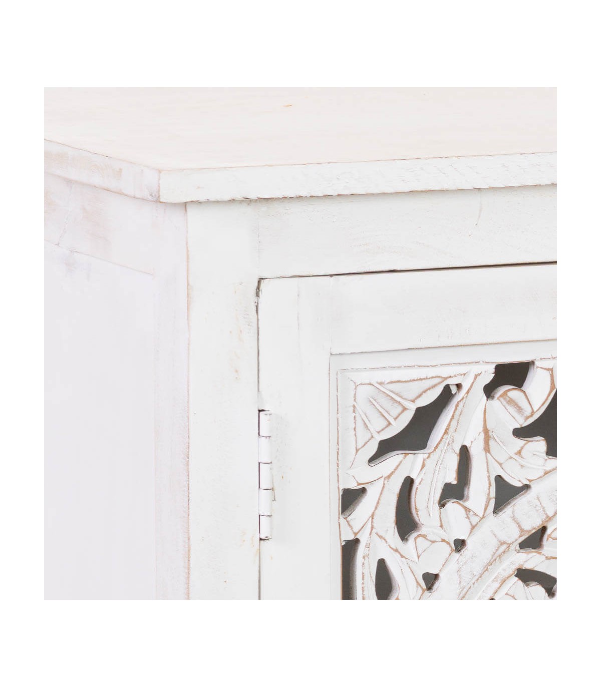 🪵 Taquillón grande madera tallada blanco rozado – Estilo étnico 🌿