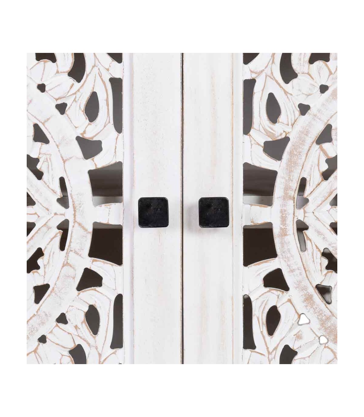 🎨 Acabado: Madera tallada a mano blanco rozado, tiradores en metal negro. Fabricación artesanal. entendemos las variaciones de tonalidad, tamaño y forma o ciertas imperfecciones (grietas, nudos, marcas) como un valor añadido que la convierten en pieza única.