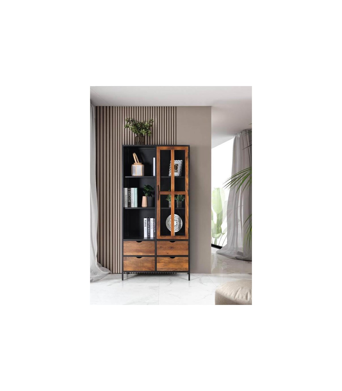 - Vitrina, 4 cajones, 1 puerta, estilo industrial.