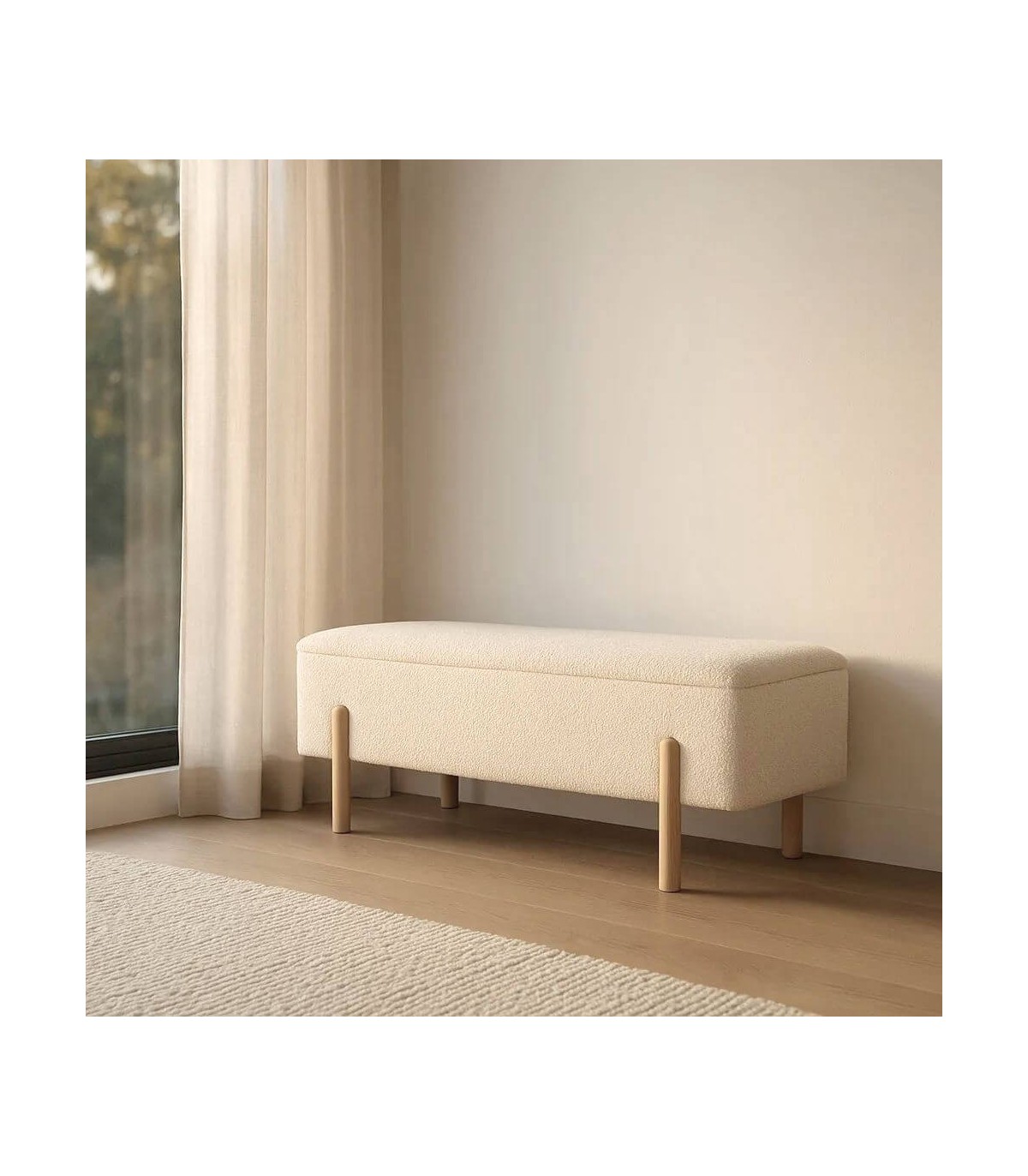 🛏️ Banco Baúl Bouclé Beige para Pie de Cama – Estilo Nórdico Funcional ✨