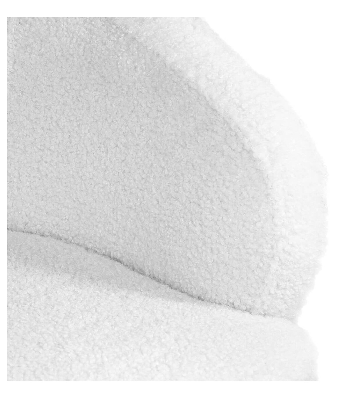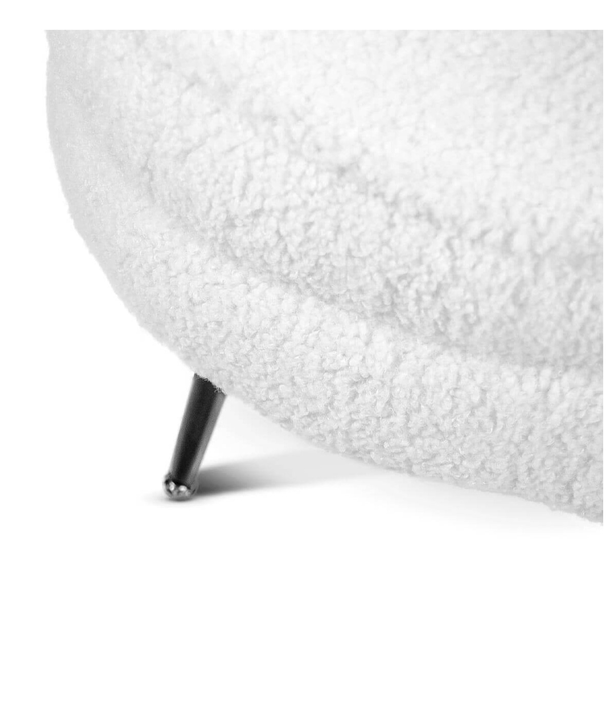 • Acabado, tapizado en tela bouclé real color blanco, patas en metal negro.