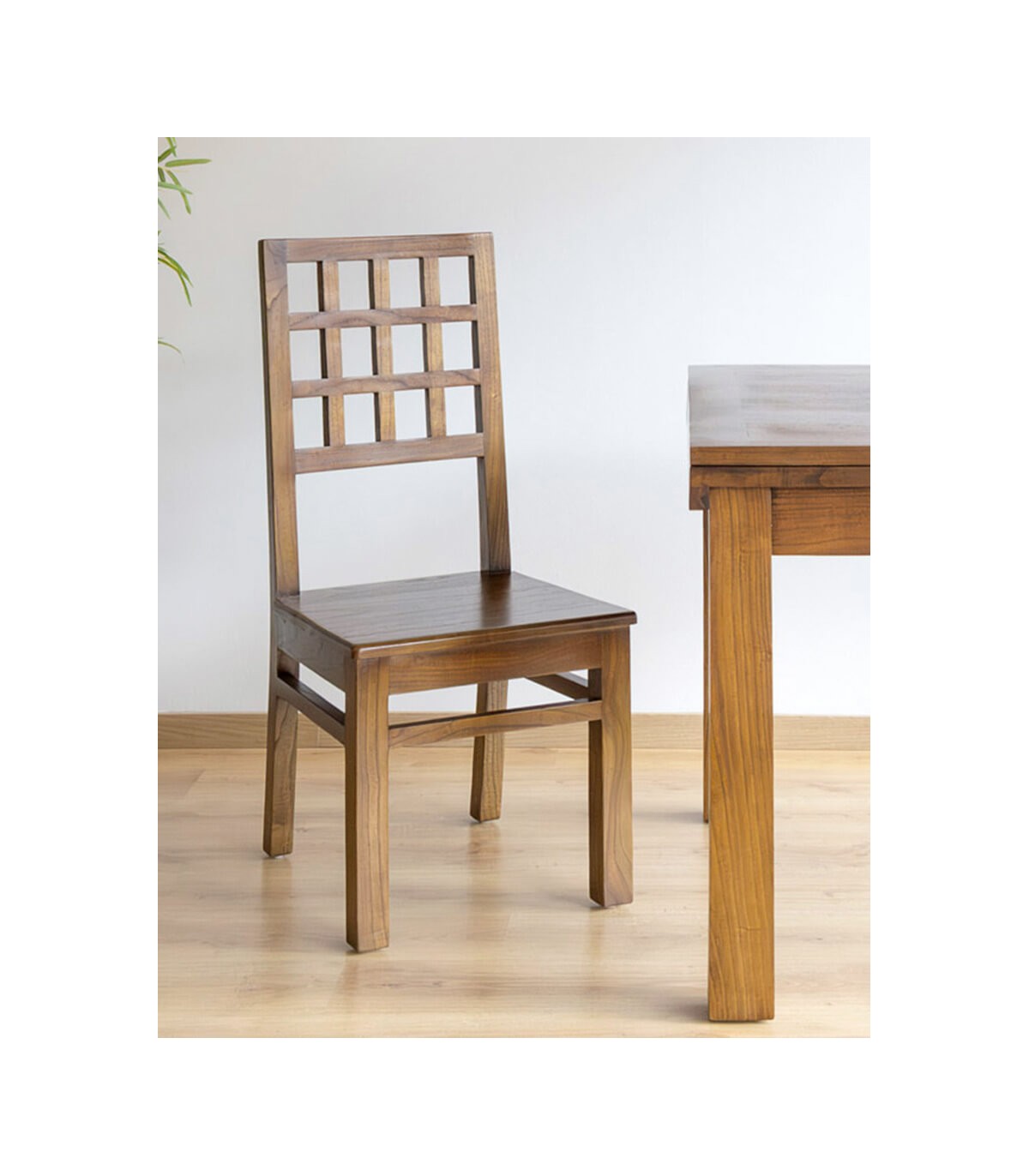 Silla de nuestra colección de muebles Star, Una colección realizada en madera maciza de mindi de estilo colonial, una gran colección con muebles para todas las zonas de tu casa, de líneas rectas y atemporales un mueble que aporta calidez y presencia, haz tu composición con los muebles auxiliares o con su modular Combi, donde podrás diseñar tu mueble principal.
