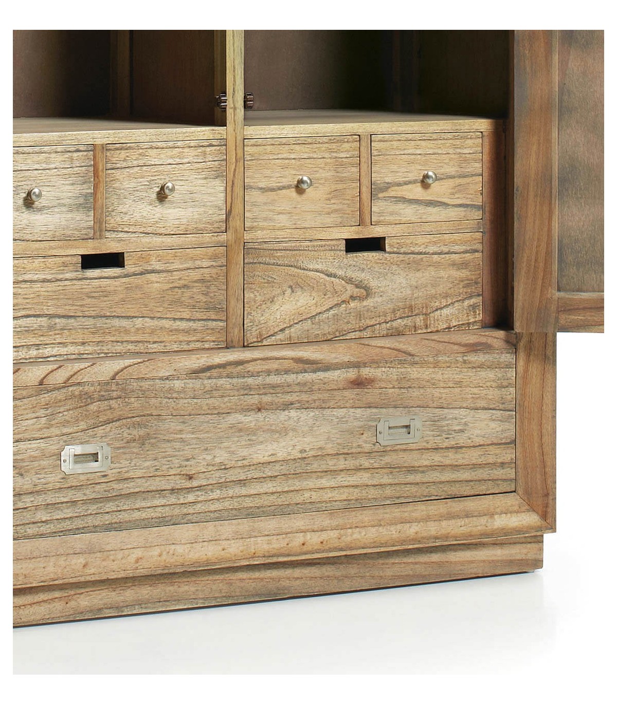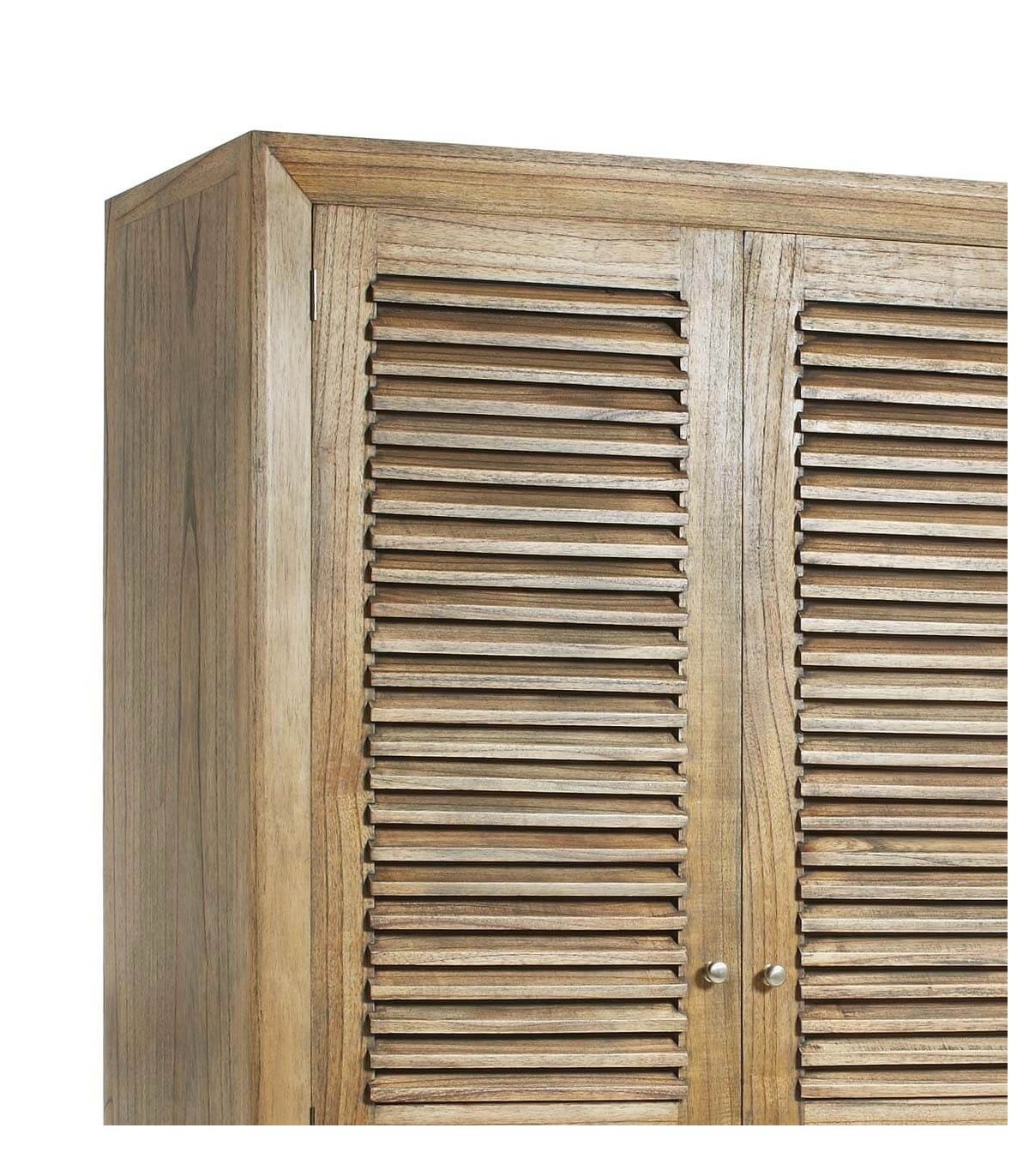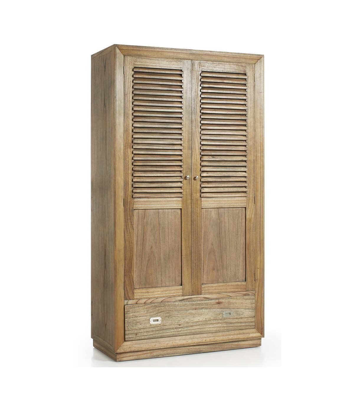 Armario de nuestra colección Merapi, Una colección realizada en madera maciza de mindi de estilo colonial con un toque moderno, realizada de forma artesanal a mano una gran colección con muebles para todas las zonas de tu casa, de líneas rectas con el detalle curvo en sus frentes, y el contraste entre su acabado natural y el bronce cromado, un mueble que aporta calidez y presencia.