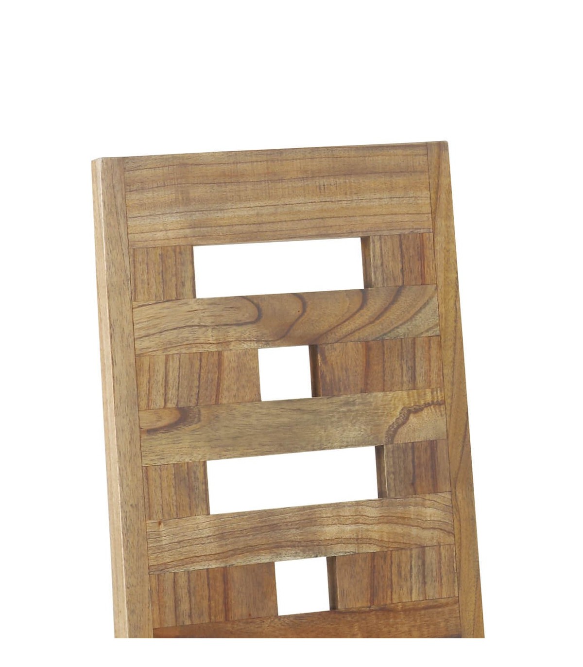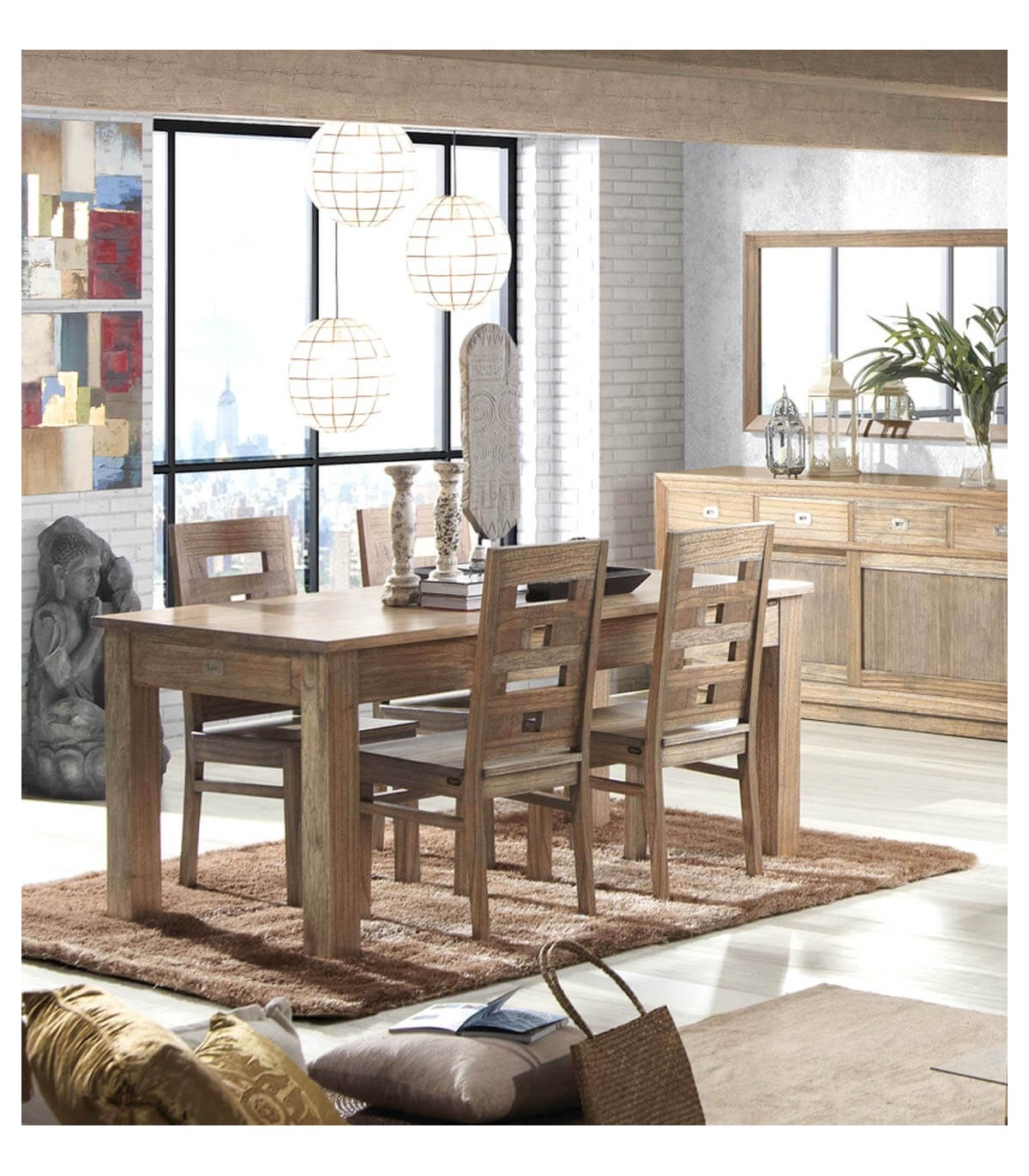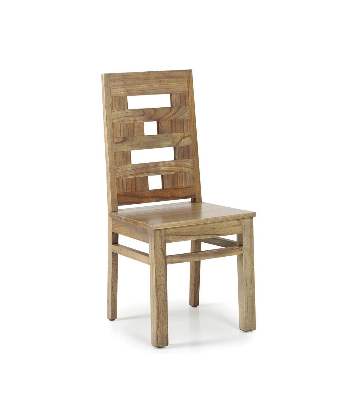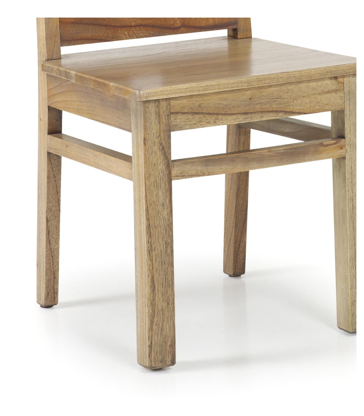 Silla de nuestra colección Merapi, Una colección realizada en madera maciza de mindi de estilo colonial con un toque moderno, realizada de forma artesanal a mano una gran colección con muebles para todas las zonas de tu casa, de líneas rectas con el detalle curvo en sus frentes, y el contraste entre su acabado natural y el bronce cromado, un mueble que aporta calidez y presencia.