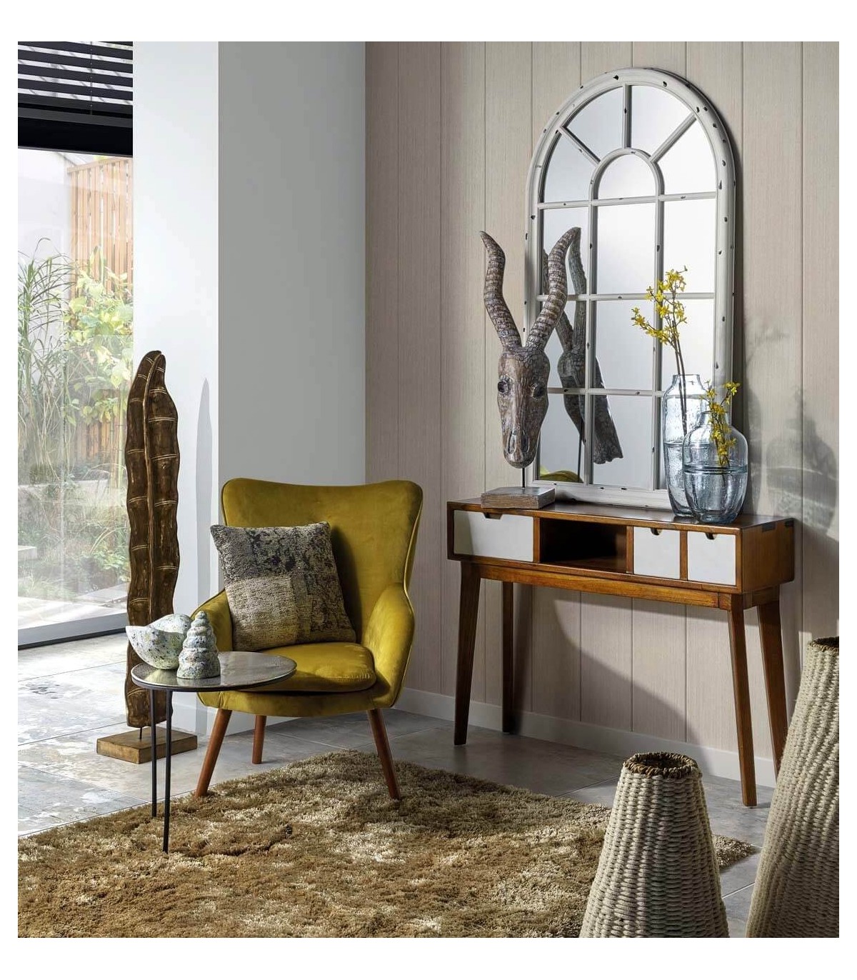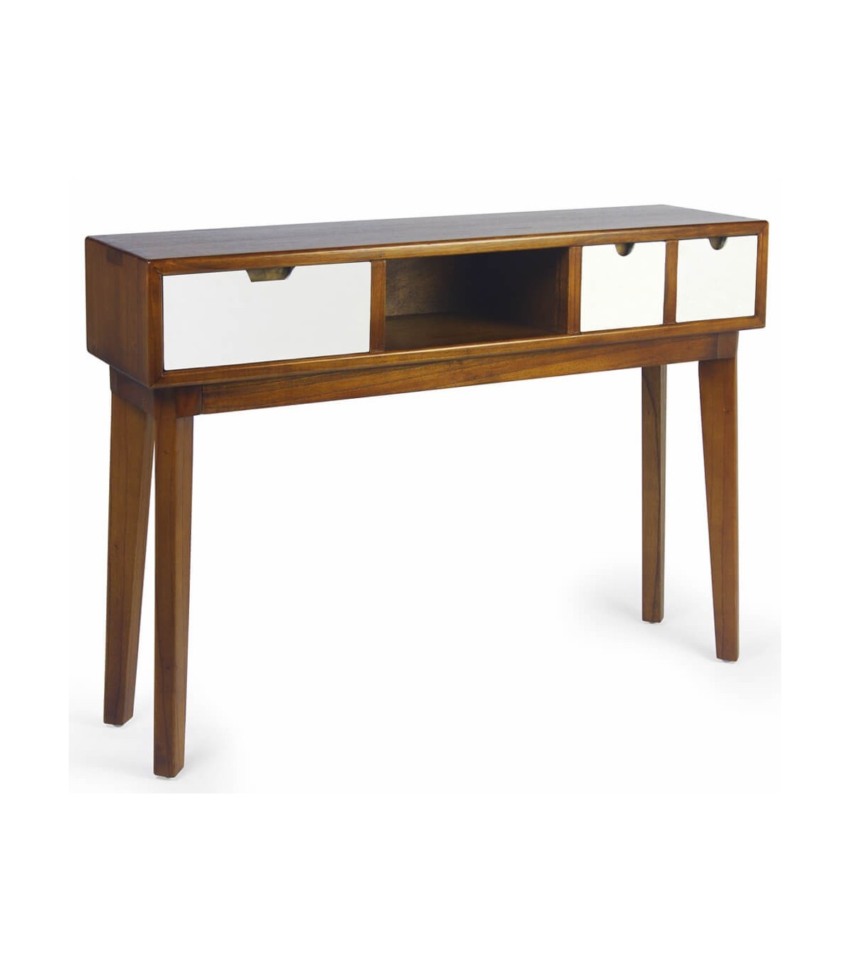 Consola de nuestra colección Artic, una colección a caballo entre el estilo colonial y el nórdico, realizada artesanalmente a mano, mezclando la madera natural y el blanco con detalles en los tiradores en bronce, perfecta para quien busca un mueble de calidad elegante y con esa punto luminoso que aporta el blanco, perfecta para tu salón o dormitorio.