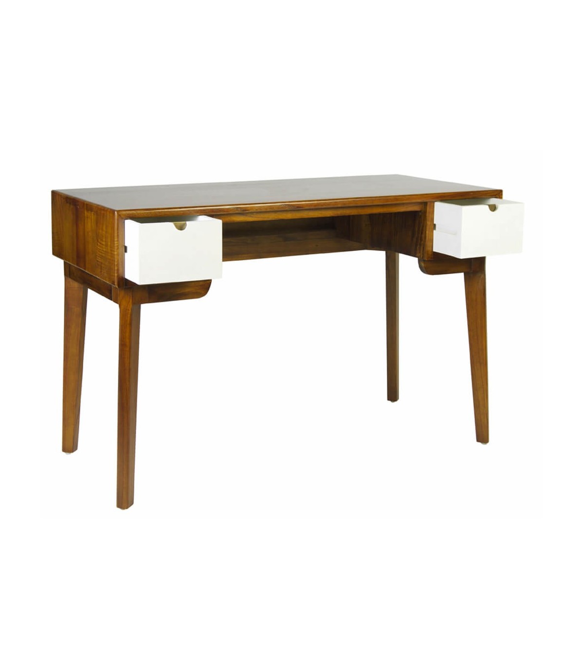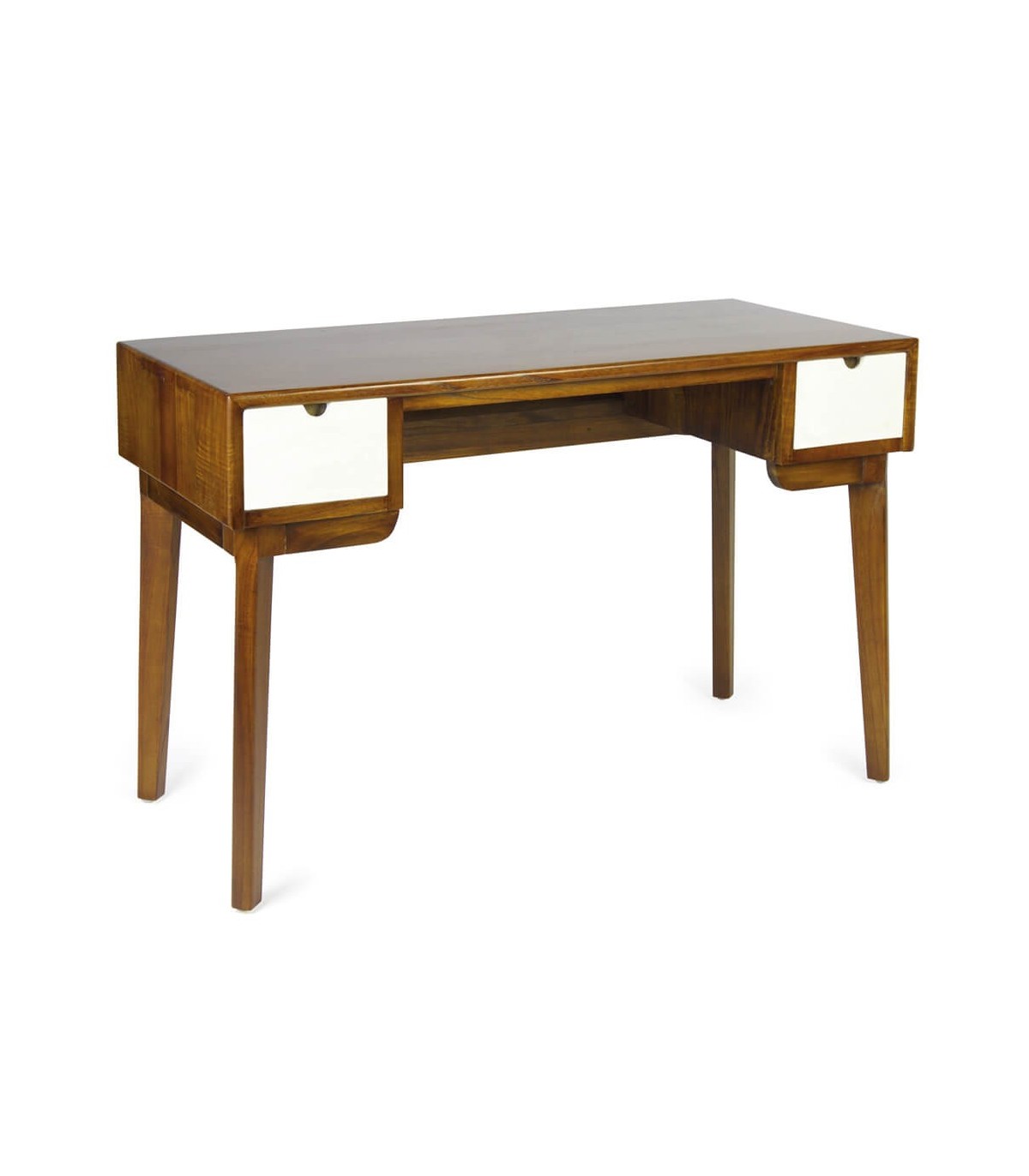 Mesa escritorio de nuestra colección Artic, una colección a caballo entre el estilo colonial y el nórdico, realizada artesanalmente a mano, mezclando la madera natural y el blanco con detalles en los tiradores en bronce, perfecta para quien busca un mueble de calidad elegante y con esa punto luminoso que aporta el blanco, perfecta para tu salón o dormitorio.