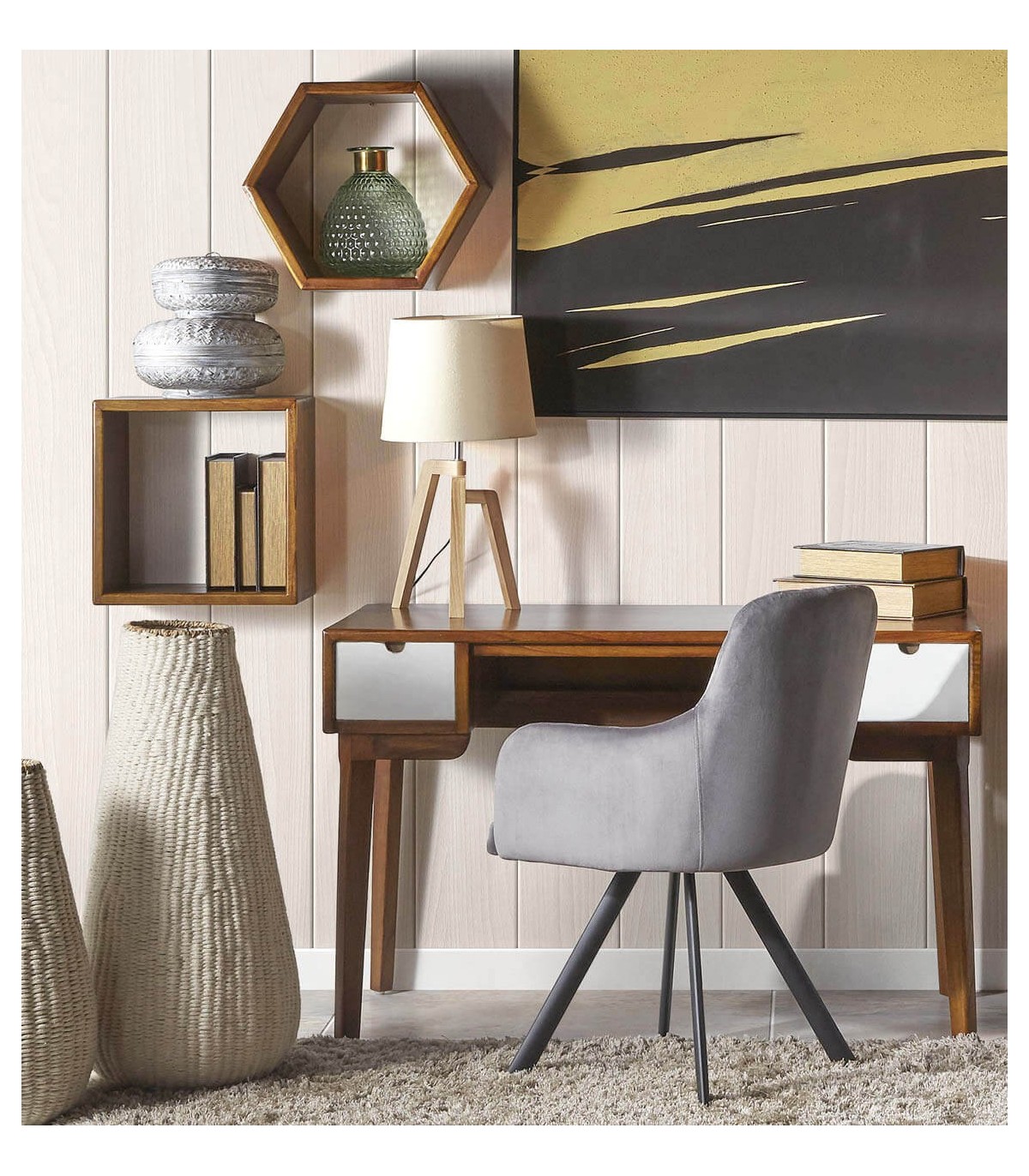 - Mesa escritorio, 2 cajones + 1 oculto, estilo nórdico.