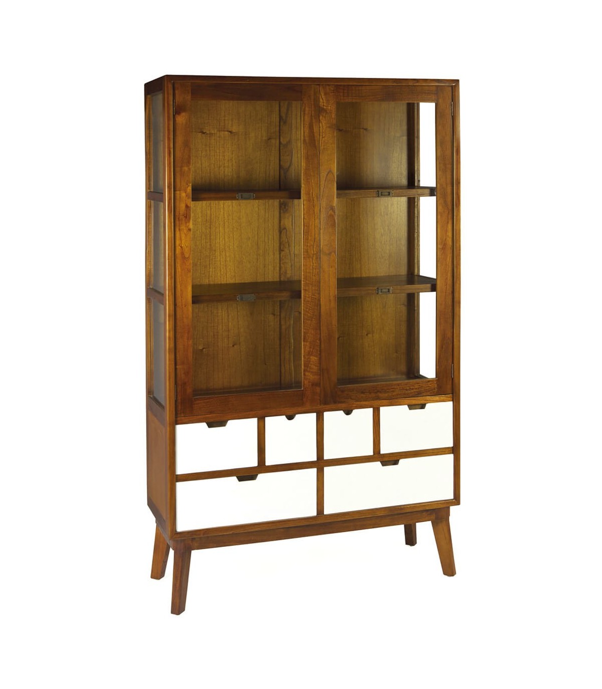 Vitrina de nuestra colección Artic, una colección a caballo entre el estilo colonial y el nórdico, realizada artesanalmente a mano, mezclando la madera natural y el blanco con detalles en los tiradores en bronce, perfecta para quien busca un mueble de calidad elegante y con esa punto luminoso que aporta el blanco, perfecta para tu salón o dormitorio.