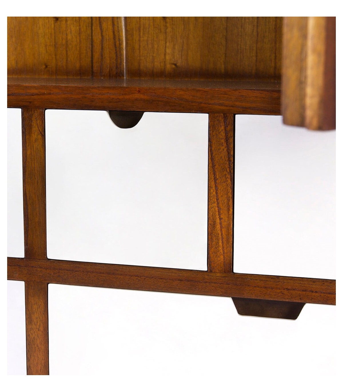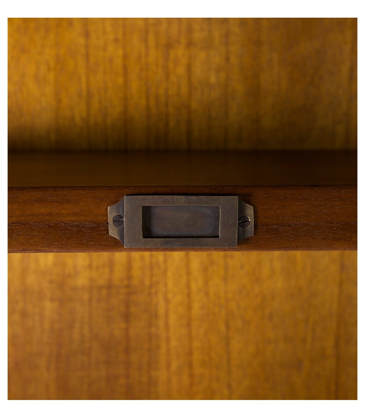 - Acabado, 100 % artesanal, hecho a mano. Madera maciza acabado teca, frente de cajones lacados en blanco, tiradores bronce.