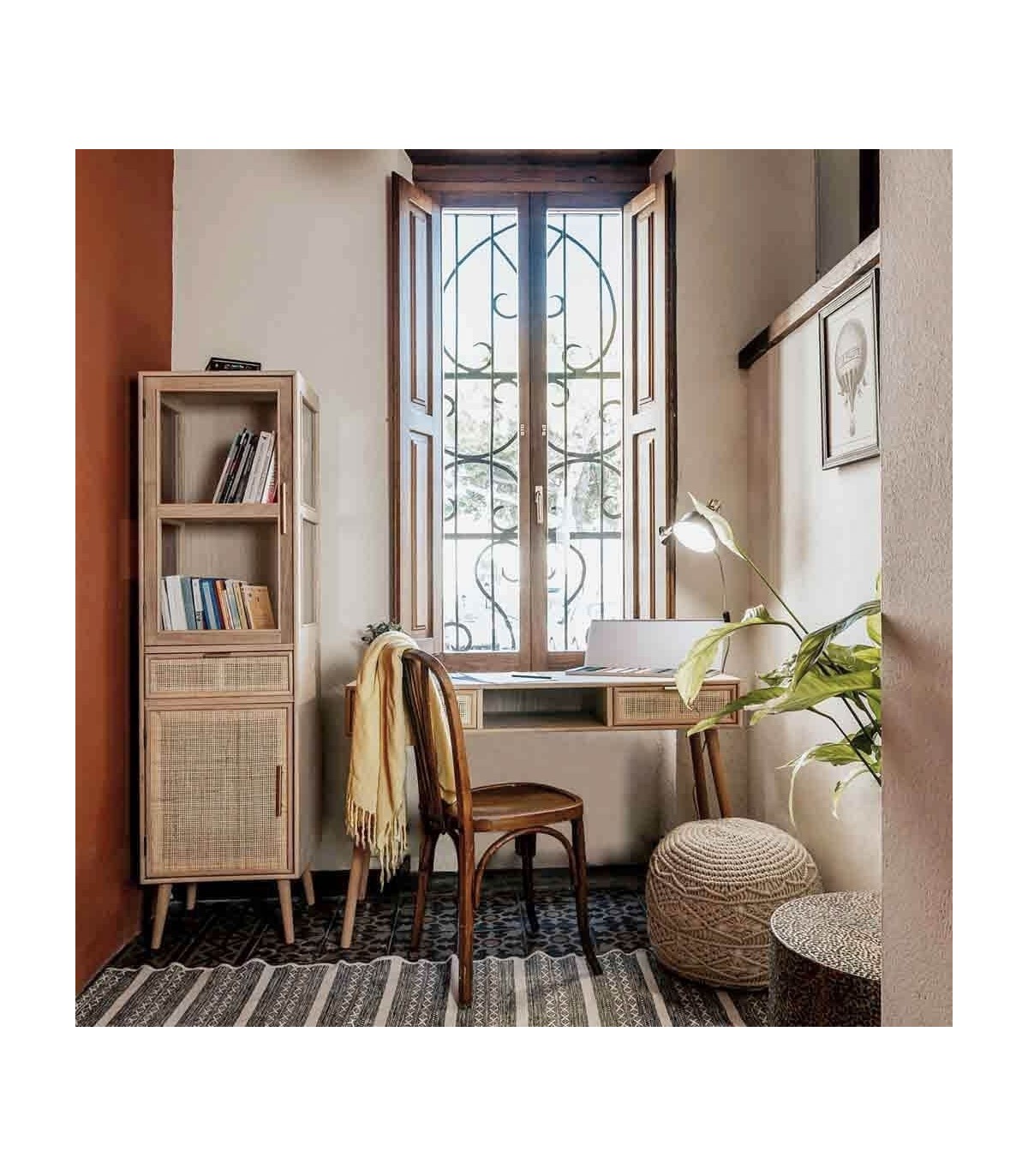 ESCRITORIO 120 X 42 CALPE MADERA Y RATAN NATURAL