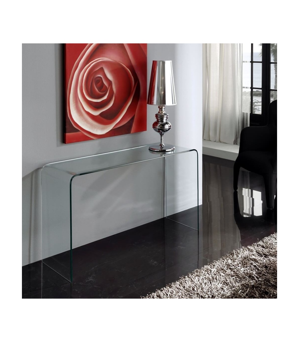 Acabado, cristal templado transparente, madera nogal, dm lacado en gris perla brillo.
