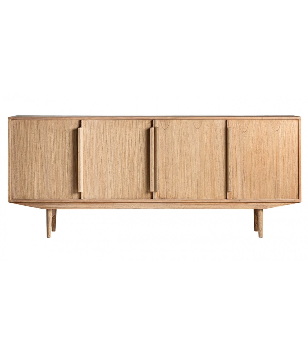 Aparador grande de nuestra colección NYRY, una colección realizada en madera maciza de mindi, un muble de estilo nórdico de calidad, con la belleza y la naturalidad de la madera natural, una colección que cuenta muebles para tu salón dormitorio o zonas auxiliares.