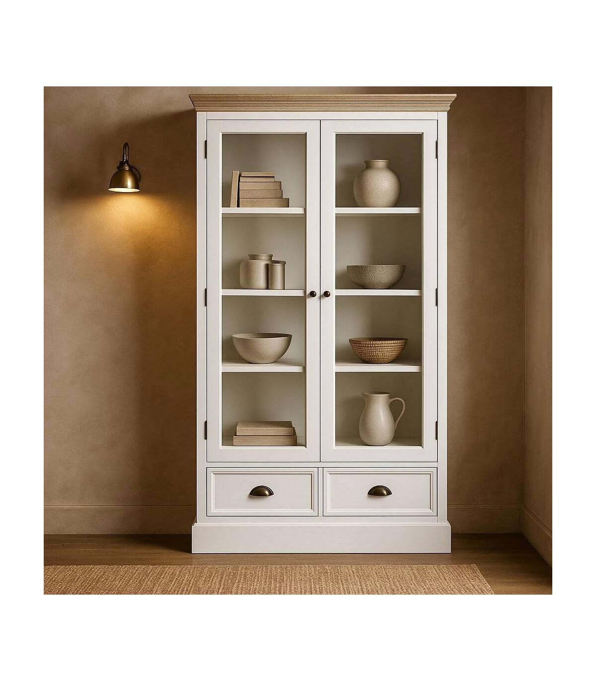 🪟 Vitrina de Madera Natural y Blanco – Estilo Rústico Elegante ✨